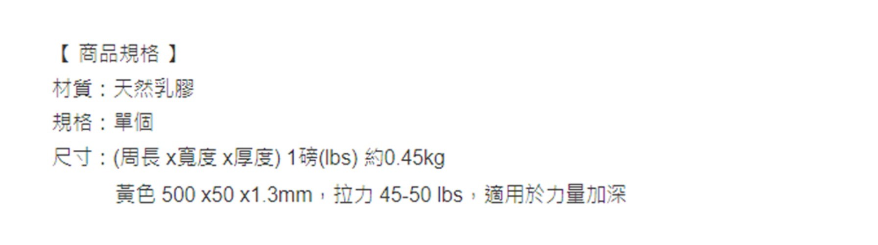 - 45-50磅拉力,適合進階訓練者,幫助您加強肌肉力量,挑戰更高難度的動作。