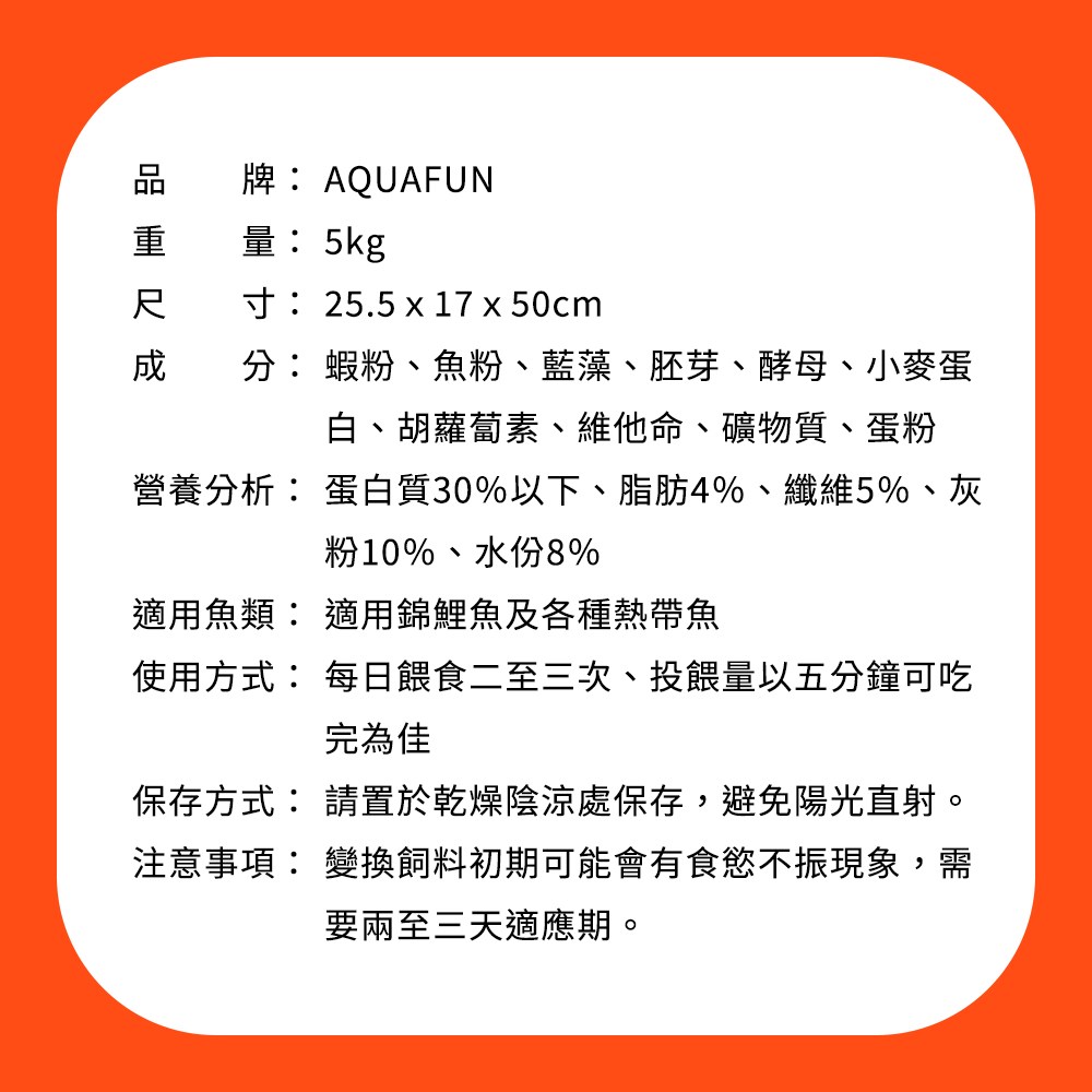- 魚飼料種類: 漂浮,顆粒