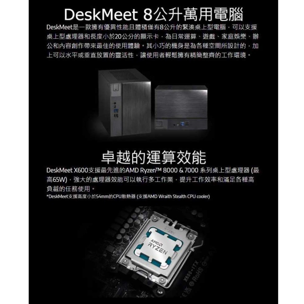 - 華擎DeskMeet X600支援AMD Ryzen 8000/7000系列處理器,提供卓越的運算效能。