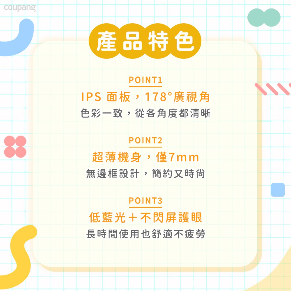 ・採用IPS 178度超廣視角面板,呈現清晰畫面