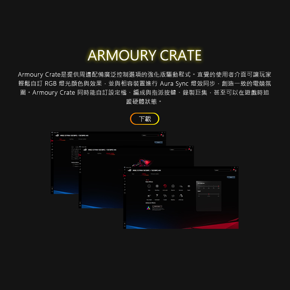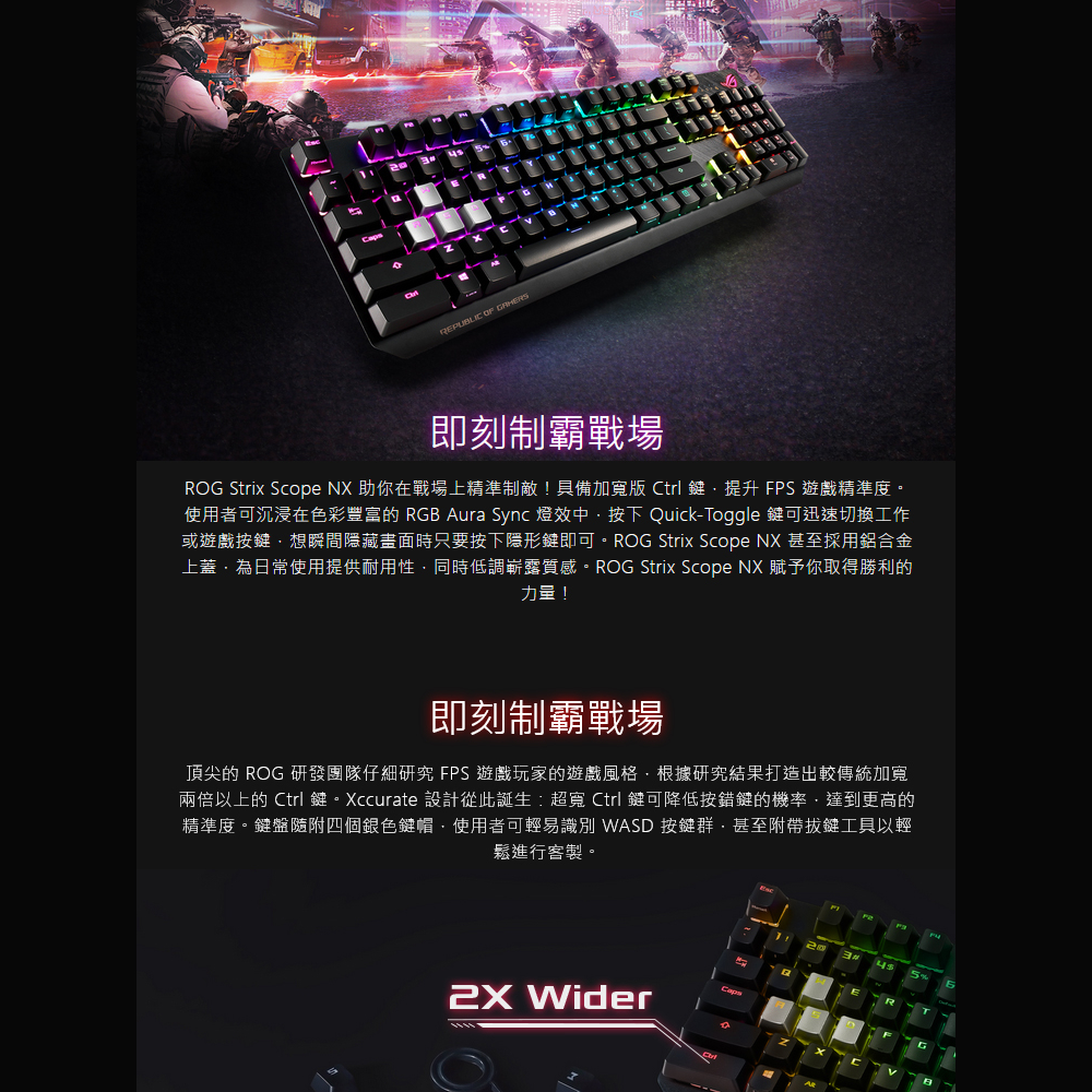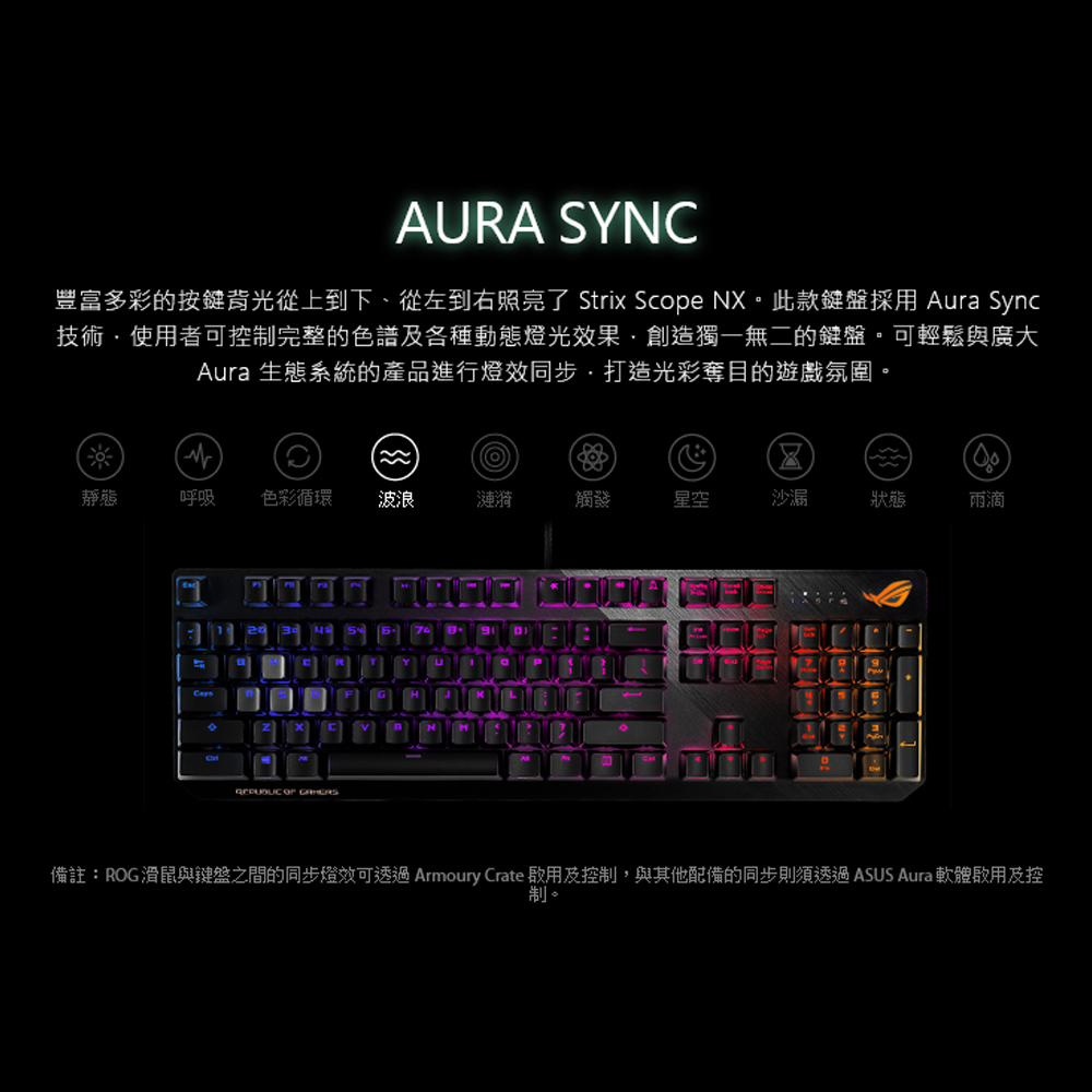 - ROG機械式電競鍵盤提供舒適的打字體驗,長時間使用也不易感到疲勞。