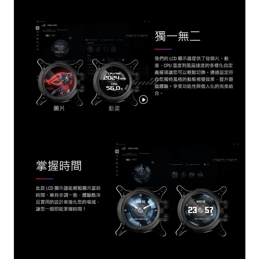 - ROG STRIX LC III飛龍三代,搭配ARGB燈效,打造獨一無二的個人化電腦視覺風格。