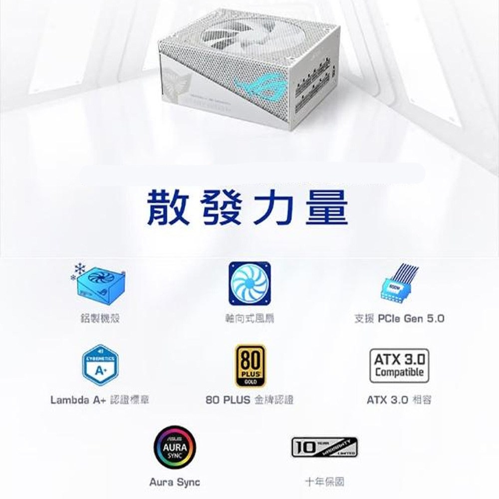 ASUS 華碩 ROG STRIX 1000W AURA金牌ATX3.0電源供應器 150 x 140 x 86cm 潮競白 1.64kg 原廠保固, ROG-STRIX-1000G-AURA-GAMING