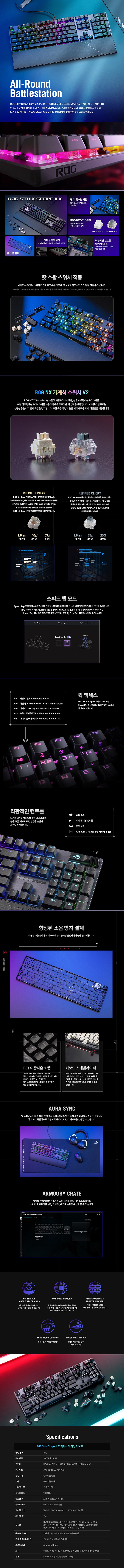 - 採用預潤滑ROG NX雪軸V2,觸發迅速、回彈俐落,長時間使用也能保持手感一致,提升操作精準度。