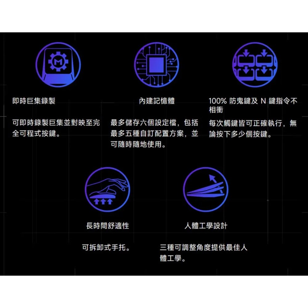 - 透過熱插拔設計,輕鬆更換ROG NX雪軸,客製化您的專屬手感,打造最舒適的遊戲或工作體驗。