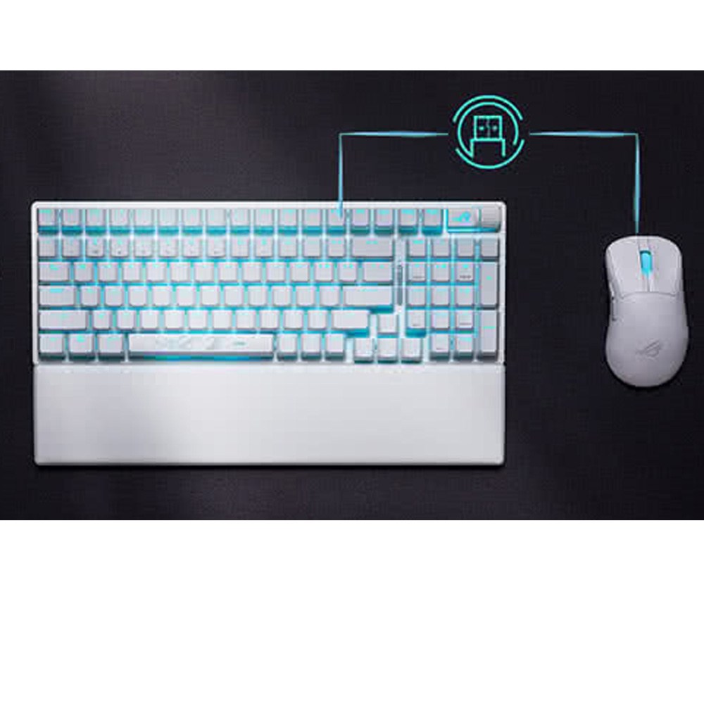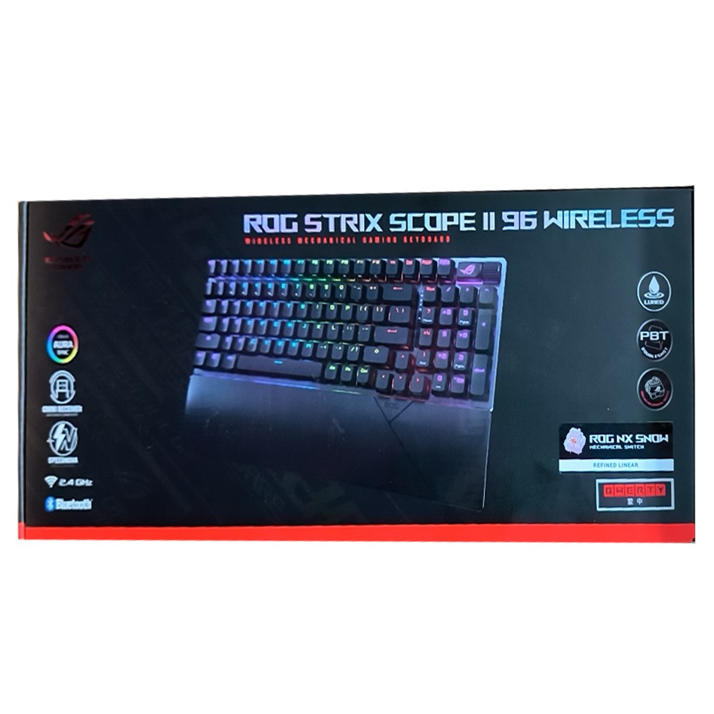 - 享受ROG Strix Scope II 96 無線鍵盤帶來的自由,擺脫線材束縛,讓桌面更簡潔俐落,提升遊戲體驗。