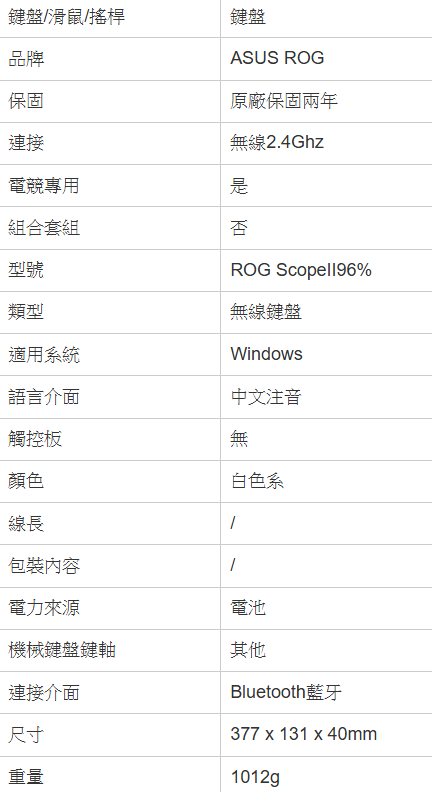 - 華碩雪軸無線電競鍵盤,提供精準快速的按鍵反應,讓您在遊戲中佔盡優勢,享受極致操控體驗。