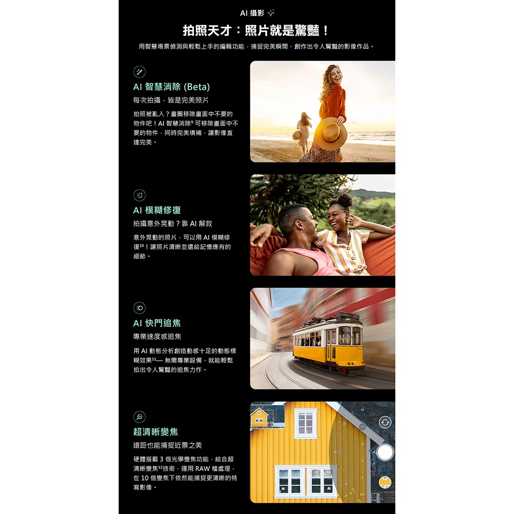 - 6.78吋AMOLED螢幕,色彩鮮明細膩,讓您沉浸在生動的視覺饗宴中,無論戶外或室內都能清晰觀看。