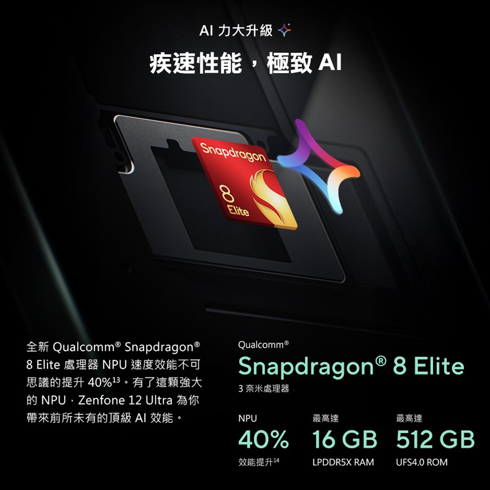 - 搭載高通驍龍8 Elite處理器,提供極致AI效能,讓您體驗前所未有的疾速性能,輕鬆應對各種任務。