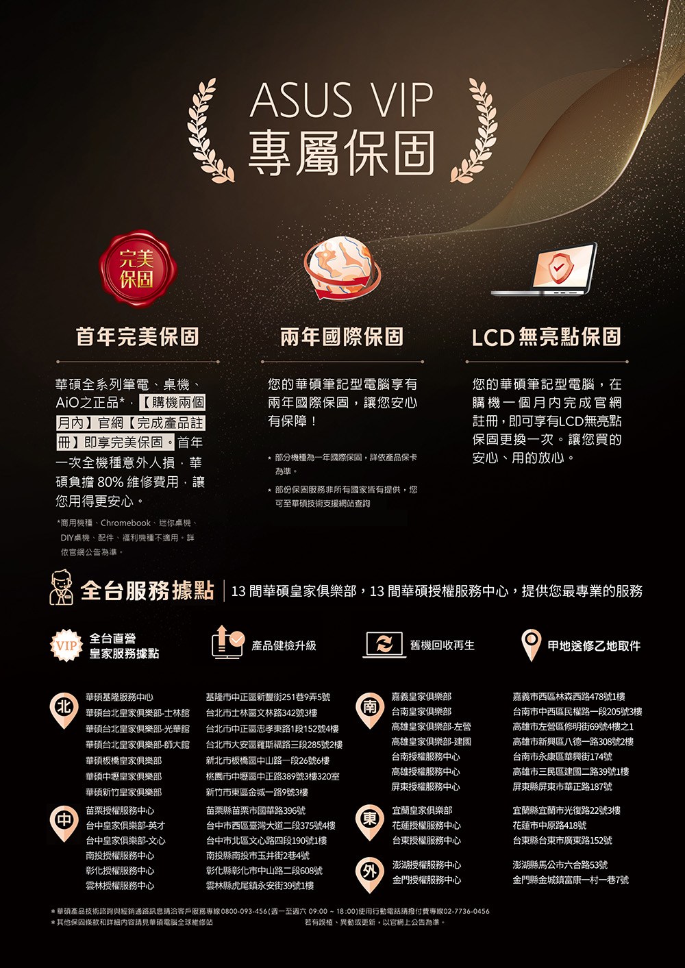 - · 產品任何部件遺失、受損、故障、受到汙染或其他可歸責於顧客的情況
