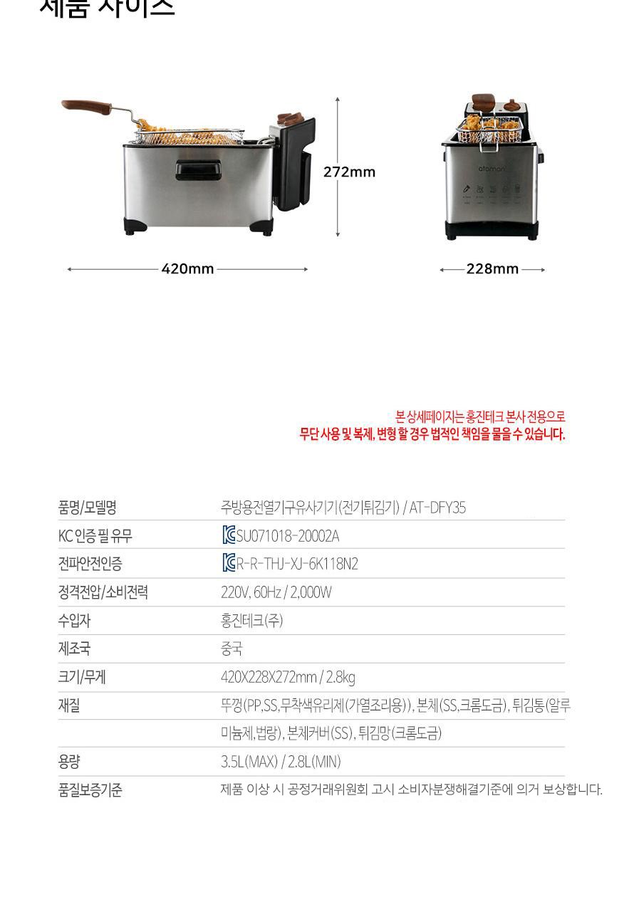 ATOman不鏽鋼油炸鍋AT-DFY35,採用3.5L大容量設計,讓您輕鬆烹飪多份炸物,滿足全家人的味蕾。不鏽鋼材質不僅衛生耐用,且易於清潔,讓您使用更安心。簡易的溫度與時間調節旋鈕,操作簡單方便,即使是料理新手也能輕鬆上手。搭配可分離式炸籃,方便瀝油,讓您享受更健康的美味。此外,過熱安全感應器設計,讓您使用更安全無虞,盡情享受油炸料理的樂趣。
