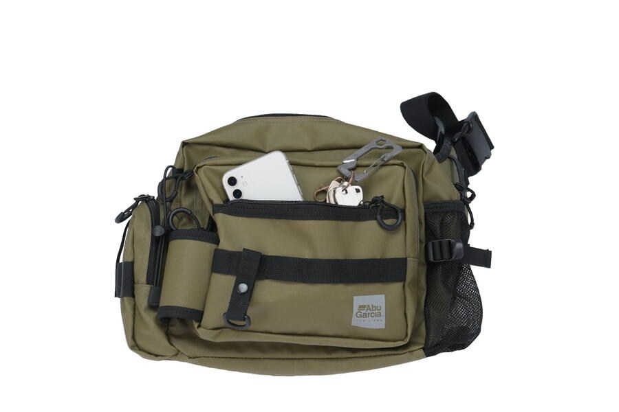 ABU Garcia 多功能斜肩包是釣魚愛好者的理想選擇。這款橄欖綠色的釣魚包尺寸為27 x 24 x 10公分,採用耐用的尼龍材質製成,確保您的釣具安全無虞。斜肩包設計讓您在行動時更加靈活,方便隨時取用所需物品。多個隔層和口袋提供充足的收納空間,讓您可以井然有序地存放釣餌、魚線和其他配件。拉鍊設計確保物品安全,讓您專注於享受釣魚的樂趣。