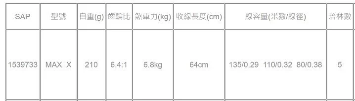 - 捲線器最大拉力值: 6.8kg