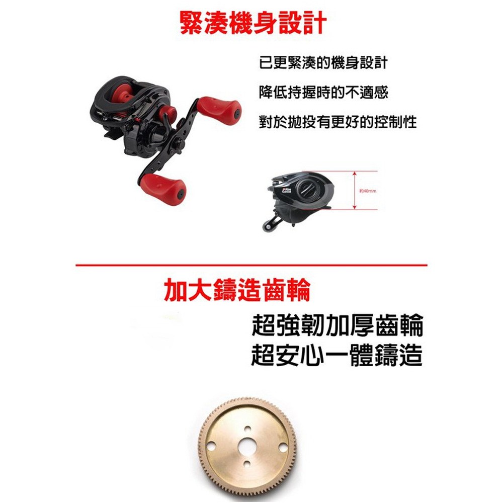 - - 6.4:1齒輪比,收線速度快,能迅速應對魚訊,增加釣獲機會。