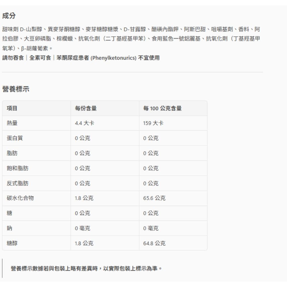 - - 無糖配方讓您隨時享受清新好口氣,不擔心糖分負擔,隨時保持最佳狀態。