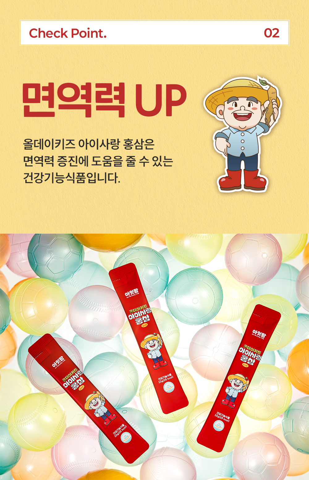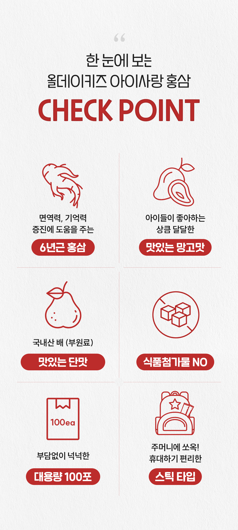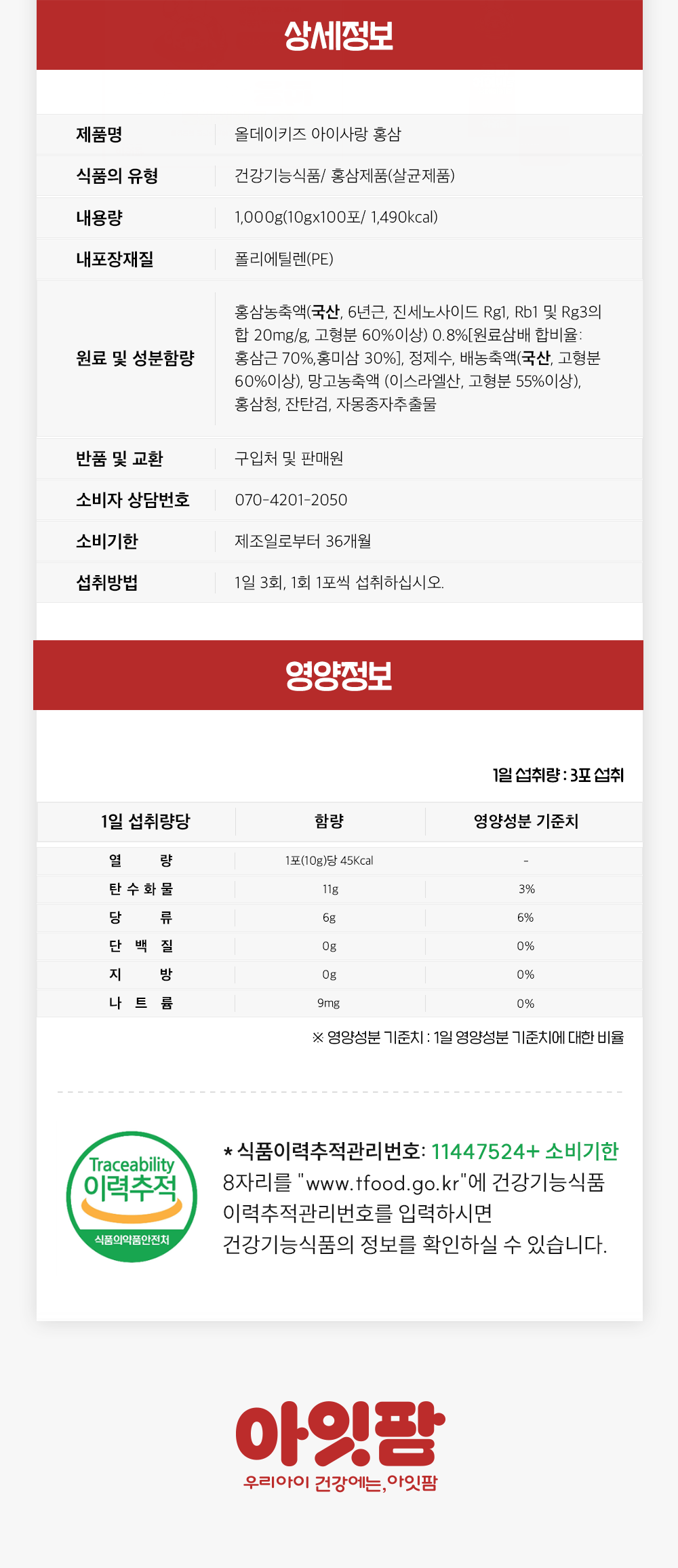 Aitfarm All Day孩童眼睛愛護紅蔘,專為3歲以上兒童設計的健康機能食品。嚴選韓國六年根紅蔘,搭配芒果風味,口感香甜,孩子們喜愛。獨立包裝,方便攜帶,隨時補充,守護孩子健康成長。本產品不含合成香料、液態果糖等添加劑,讓家長安心。