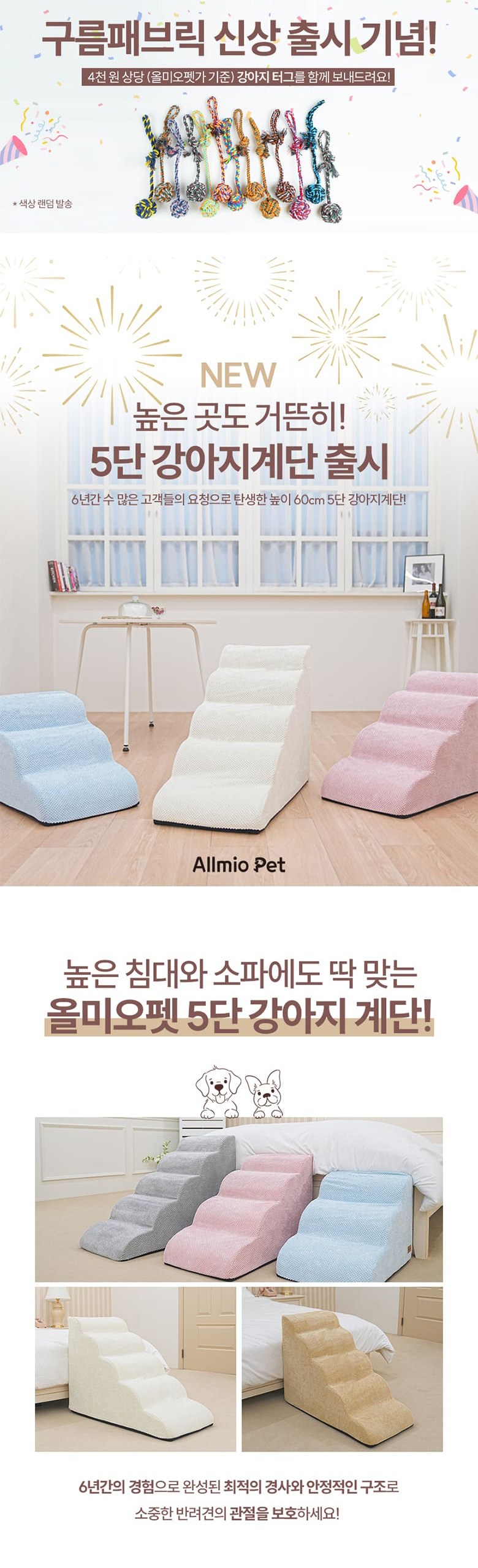 Allmio Pet寵物雲朵布料階梯,採用柔軟的雲朵布料,給您的愛犬帶來極致舒適的體驗。五階設計,高度適中,能有效減輕寵物關節的壓力,讓牠們輕鬆上下沙發或床鋪。階梯底部採用防滑設計,確保寵物在使用時的安全。此外,這款階梯有多種顏色可選,能完美融入您的居家裝飾風格,兼具實用性與美觀性。讓您的寵物在享受舒適生活的同時,也能保護牠們的關節健康。