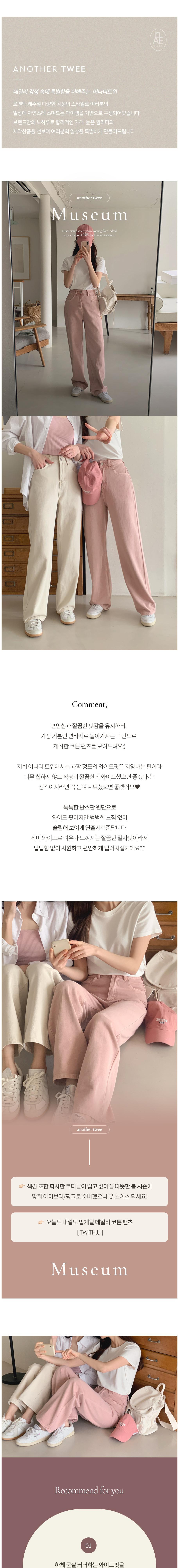 Another TWEE女士博物館半寬棉褲,以回歸基本為理念,打造舒適俐落的棉質長褲。採用厚實無彈性布料,寬版設計不顯臃腫,更能修飾身形,達到顯瘦效果。半寬鬆直筒版型,穿著涼爽舒適,適合日常穿搭。象牙白和粉紅色兩色可選,為您的春季穿搭增添亮麗色彩,輕鬆打造完美OOTD。