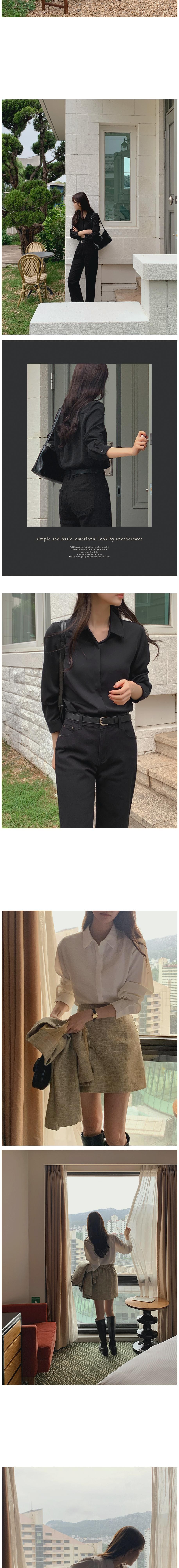 Another Twee Ruvian 襯衫採用不易皺的聚酯纖維布料,寬鬆版型設計,能有效修飾身形,展現柔美線條。隱藏式門襟設計,簡潔大方,適合各種場合穿著。黑白色系經典百搭,輕鬆打造端莊的辦公室造型或休閒的日常穿搭。不易皺的布料方便打理,讓您隨時保持整潔有型的專業形象。無論是搭配裙裝或褲裝,都能展現您的時尚品味。