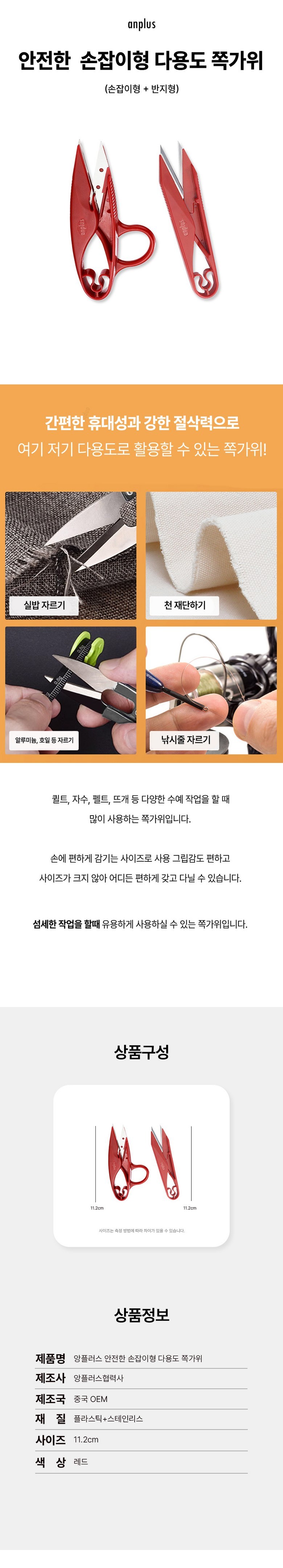 Anplus 手柄式安全紗線剪 多功能迷你裁縫剪刀 2件組, 1套, 紅色
