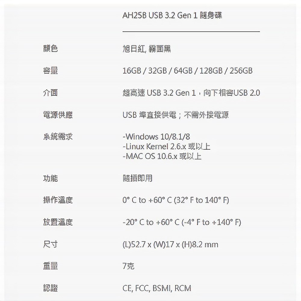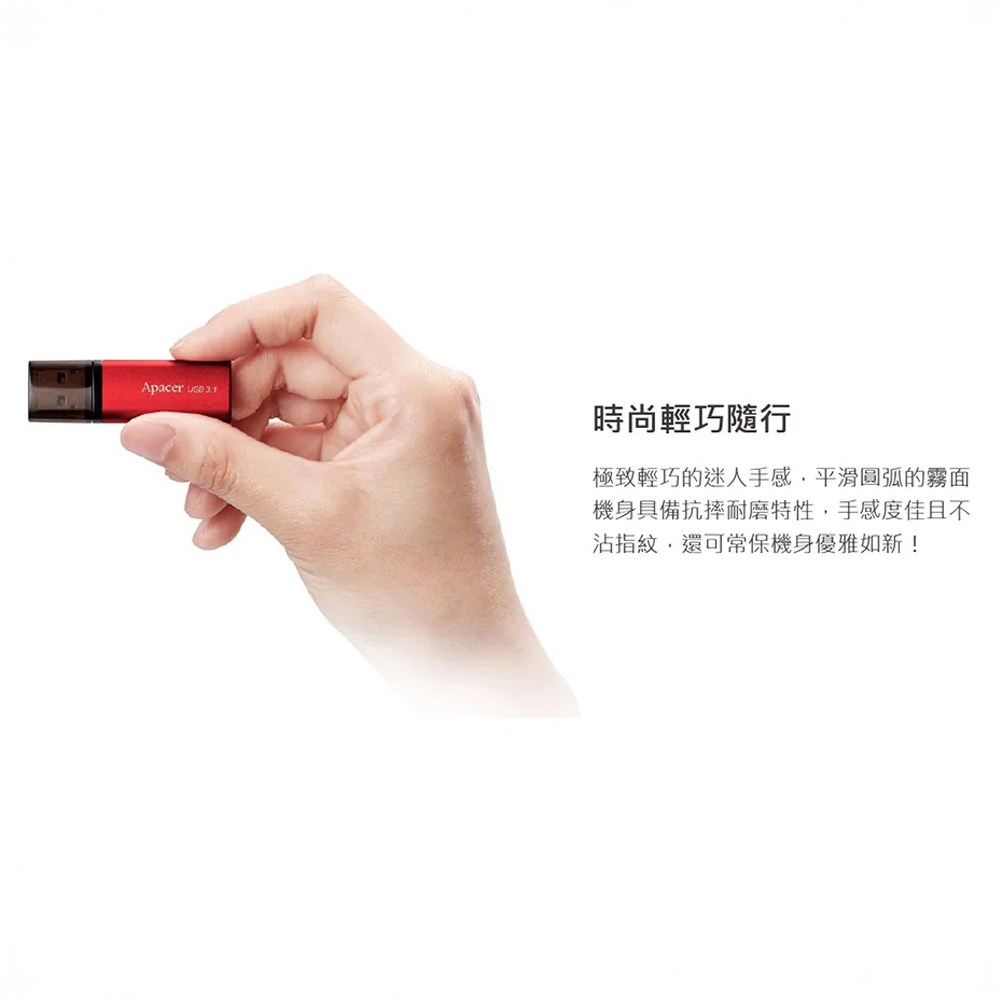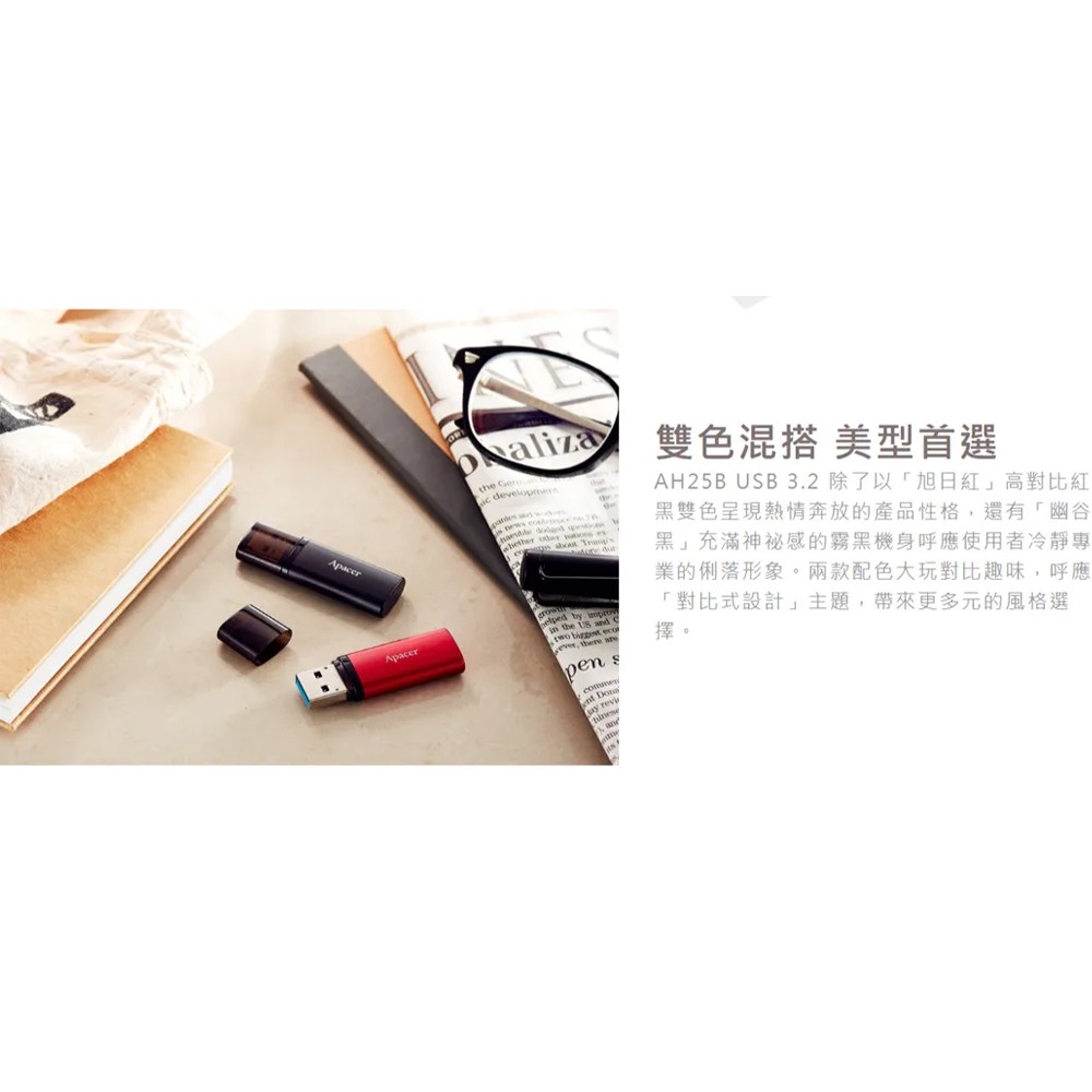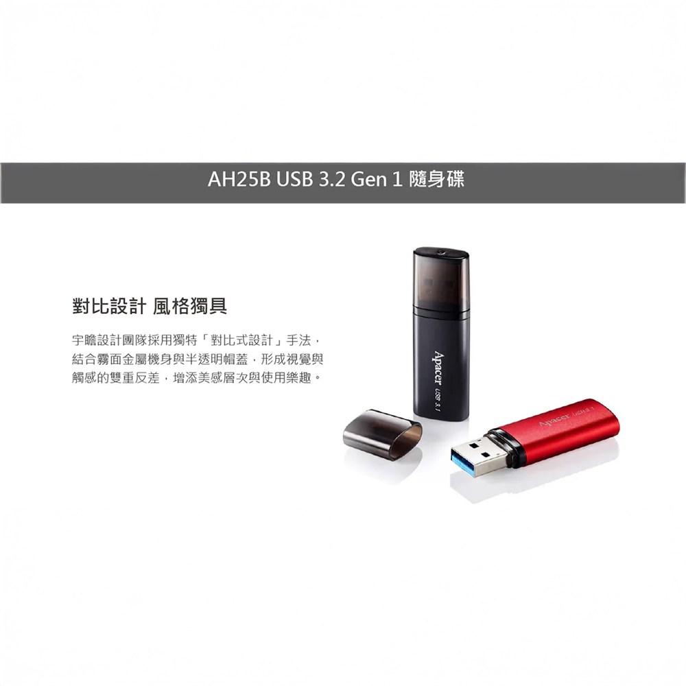 Apacer AH25B 128GB USB 3.2 Gen 1 隨身碟,採用鮮豔紅色外殼,外觀時尚精巧,方便隨身攜帶。USB 3.2 Gen 1 高速傳輸,讓您快速傳輸檔案,節省寶貴時間。128GB 大容量,可儲存大量文件、照片、影片等資料,滿足您的各種需求。Apacer 是值得信賴的品牌,品質有保障,讓您安心使用。無論是工作、學習或娛樂,Apacer AH25B 隨身碟都是您的最佳選擇。