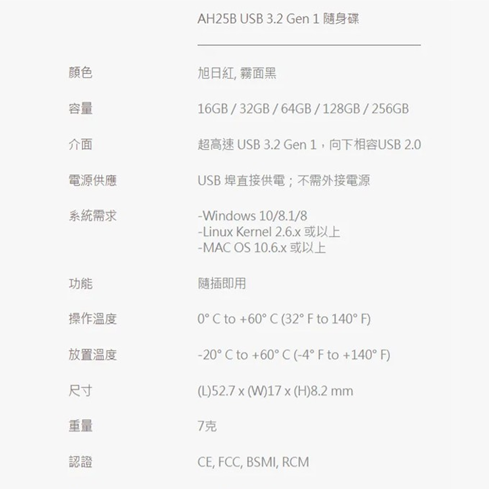 - USB版本規格: USB3.2