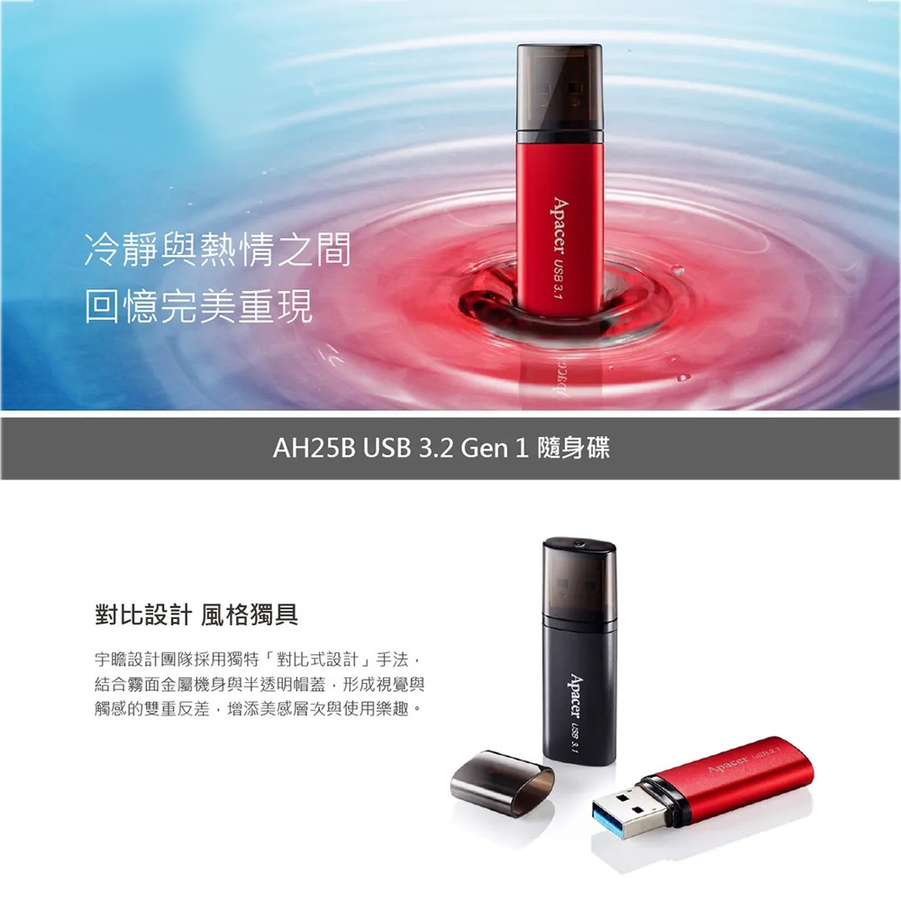 Apacer 宇瞻 AH25B USB 3.2 Gen 1 隨身碟 雙色混搭設計, 32GB, 1個