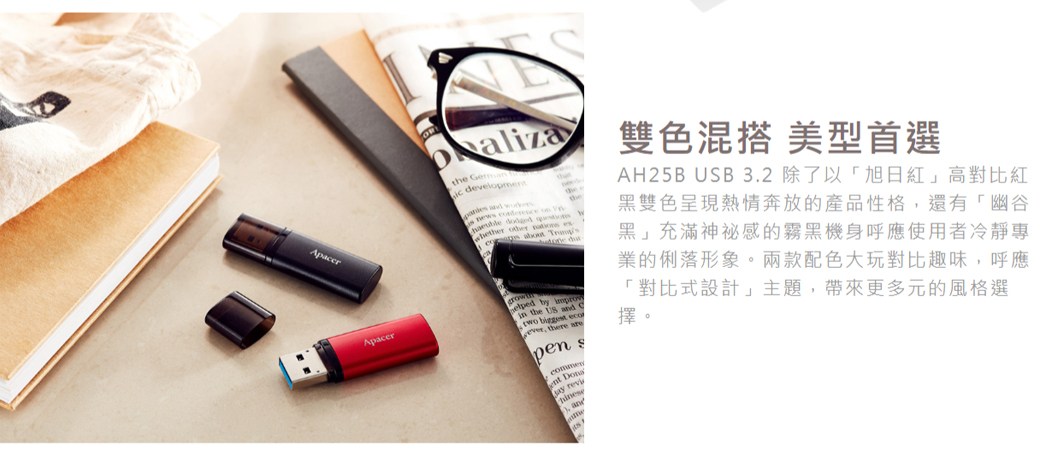 Apacer 宇瞻 USB 3.2 Gen 1 隨身碟 AH25B 雙色混搭設計 輕巧便攜 霧面金屬工藝 64GB, 1個