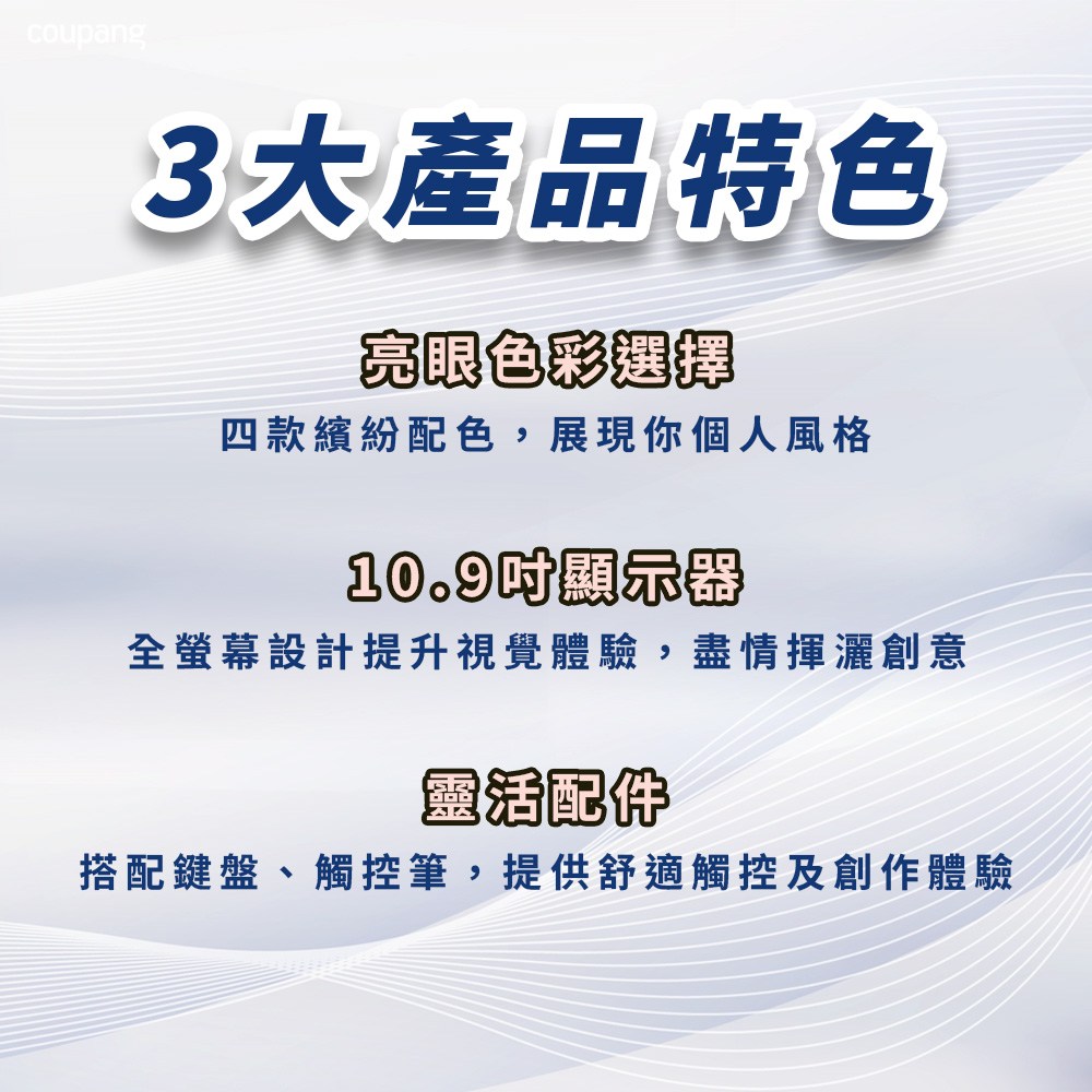 - 絢麗的10.9吋螢幕,讓您沉浸在生動的色彩中,享受視覺盛宴,體驗前所未有的清晰度。