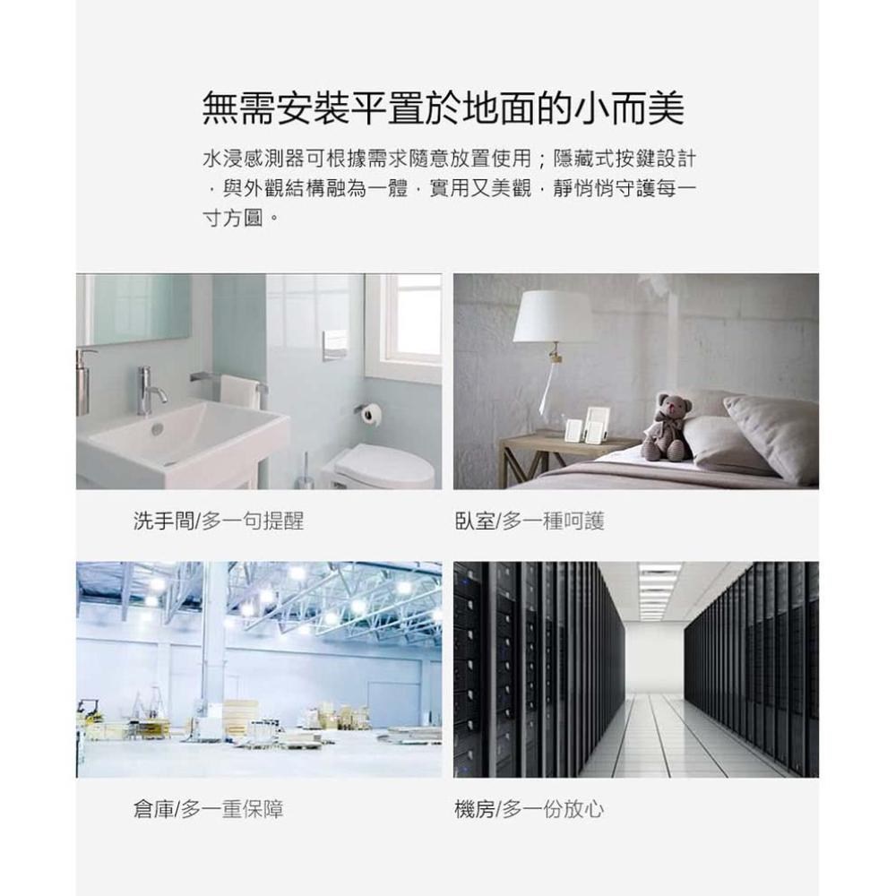 - 輕巧設計的水浸傳感器,可隨意放置於任何需要監測的角落。