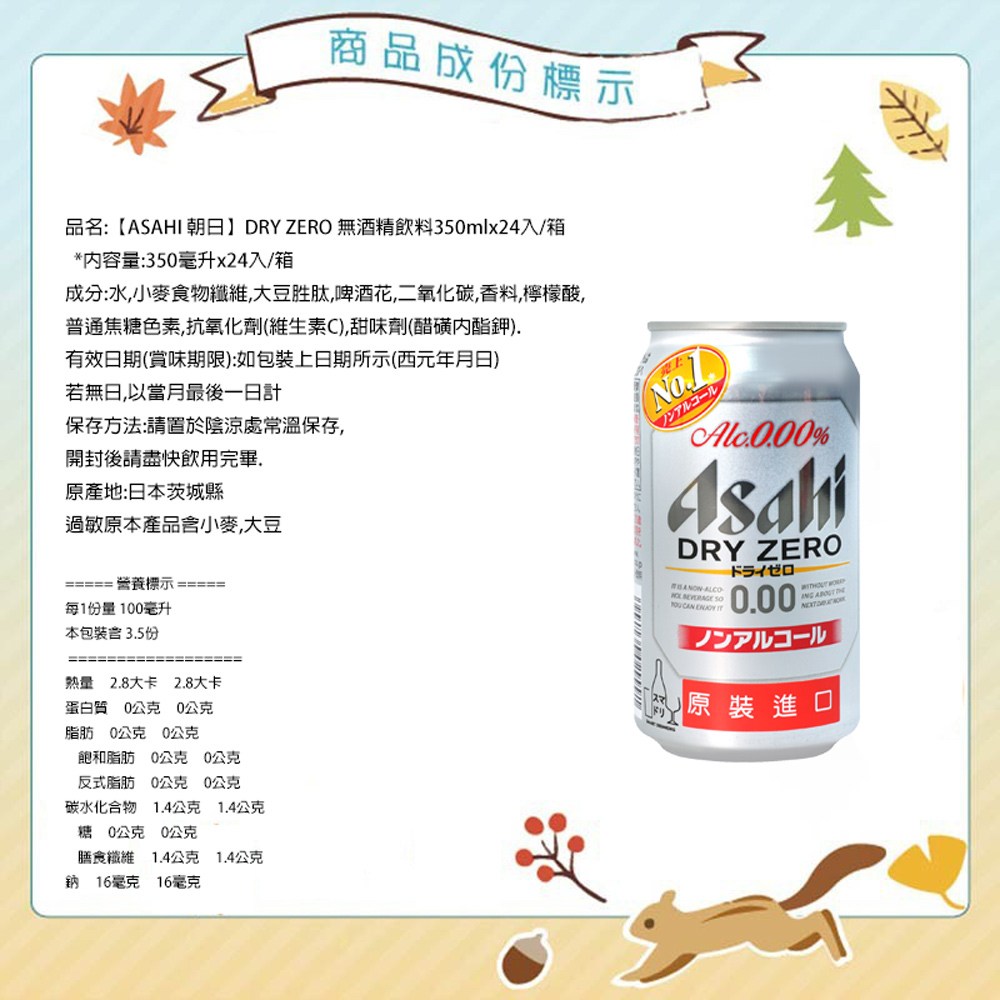 - 朝日DRY ZERO無酒精飲料,讓您隨時享受暢快口感,擺脫酒精負擔。