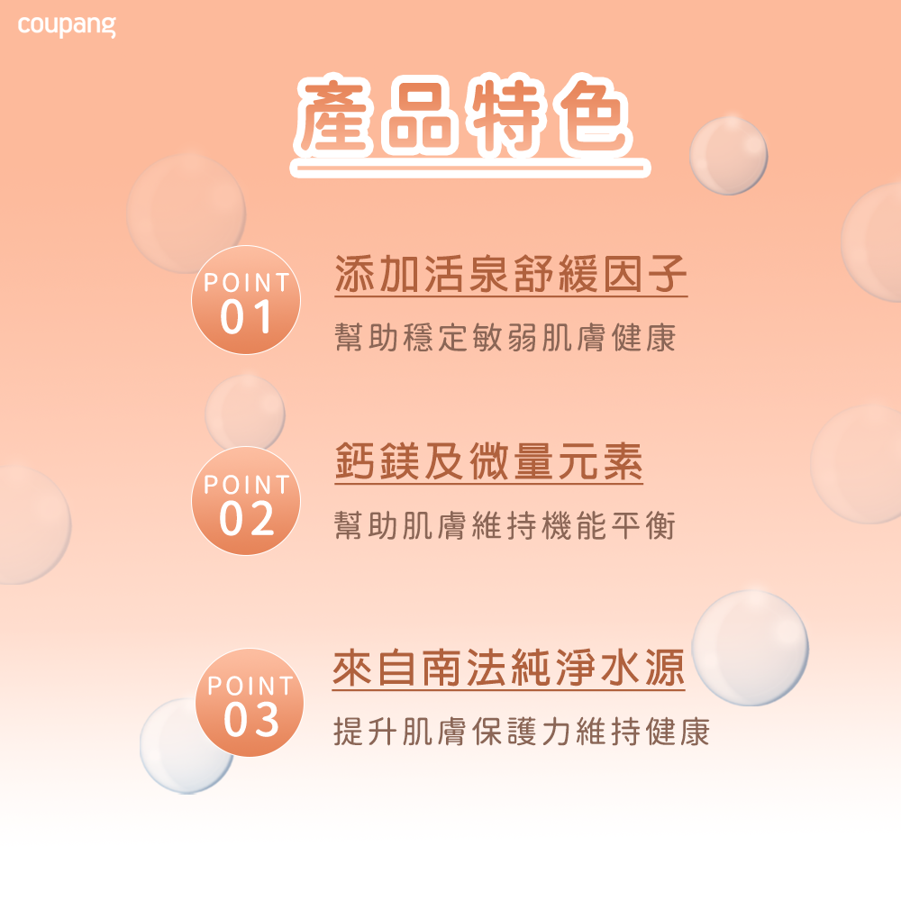 - 蘊含豐富礦物質,溫和滋潤肌膚,提升保濕效果,使肌膚柔軟有彈性,展現自然光澤。