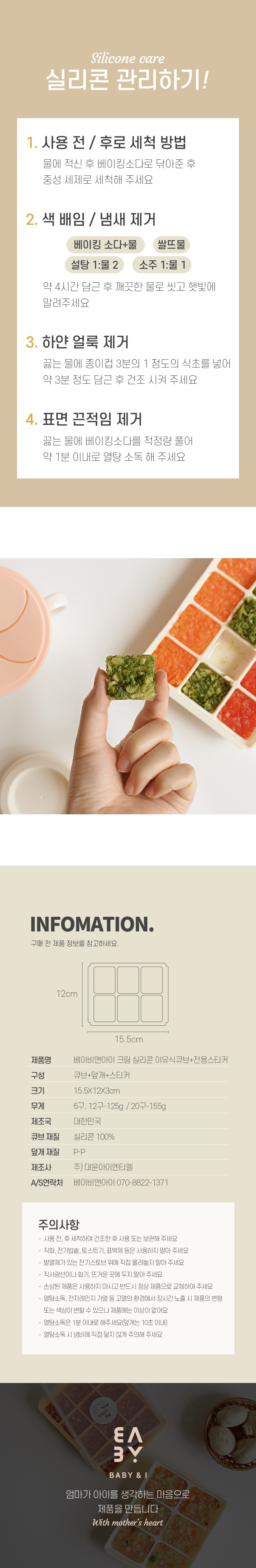 BABY&I 12格嬰兒副食品矽膠分裝保鮮盒,採用柔軟的鉑金矽膠材質製成,讓您可以輕鬆取出冷凍的副食品。透明上蓋設計,方便您清楚辨識內容物,輕鬆掌握寶寶的飲食。附贈的貼紙組,讓您記錄食材與日期,確保寶寶吃到新鮮的食物。穩固堆疊設計,節省冰箱空間,讓收納更方便。此款分裝盒也適用於製作冰塊、寶寶零食等,用途廣泛。