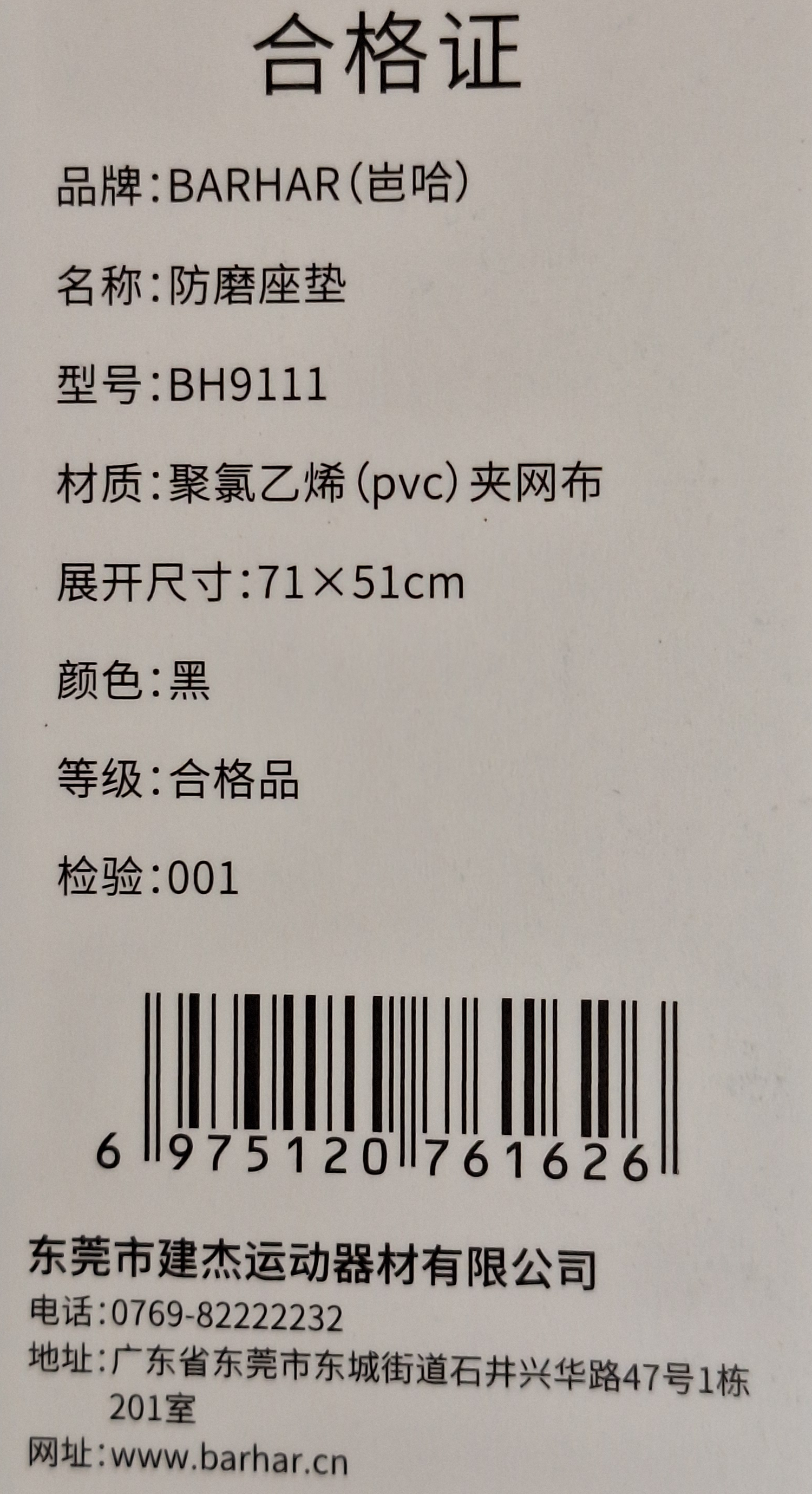 BARHAR 防磨座墊, 71x51cm 聚氯乙烯 (pvc) 夾網布, 黑色, 1個