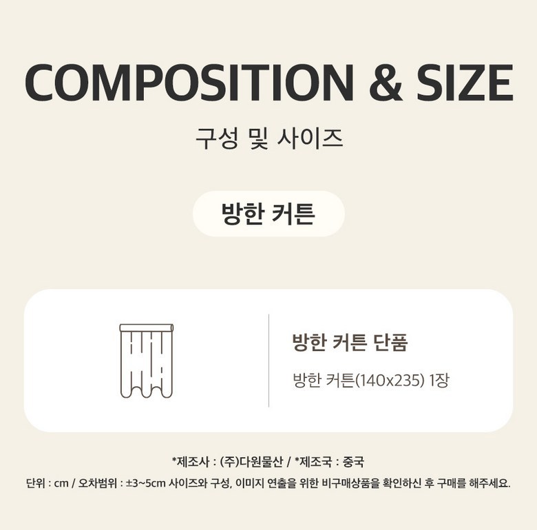 - 窗簾功能: 防寒/防風
