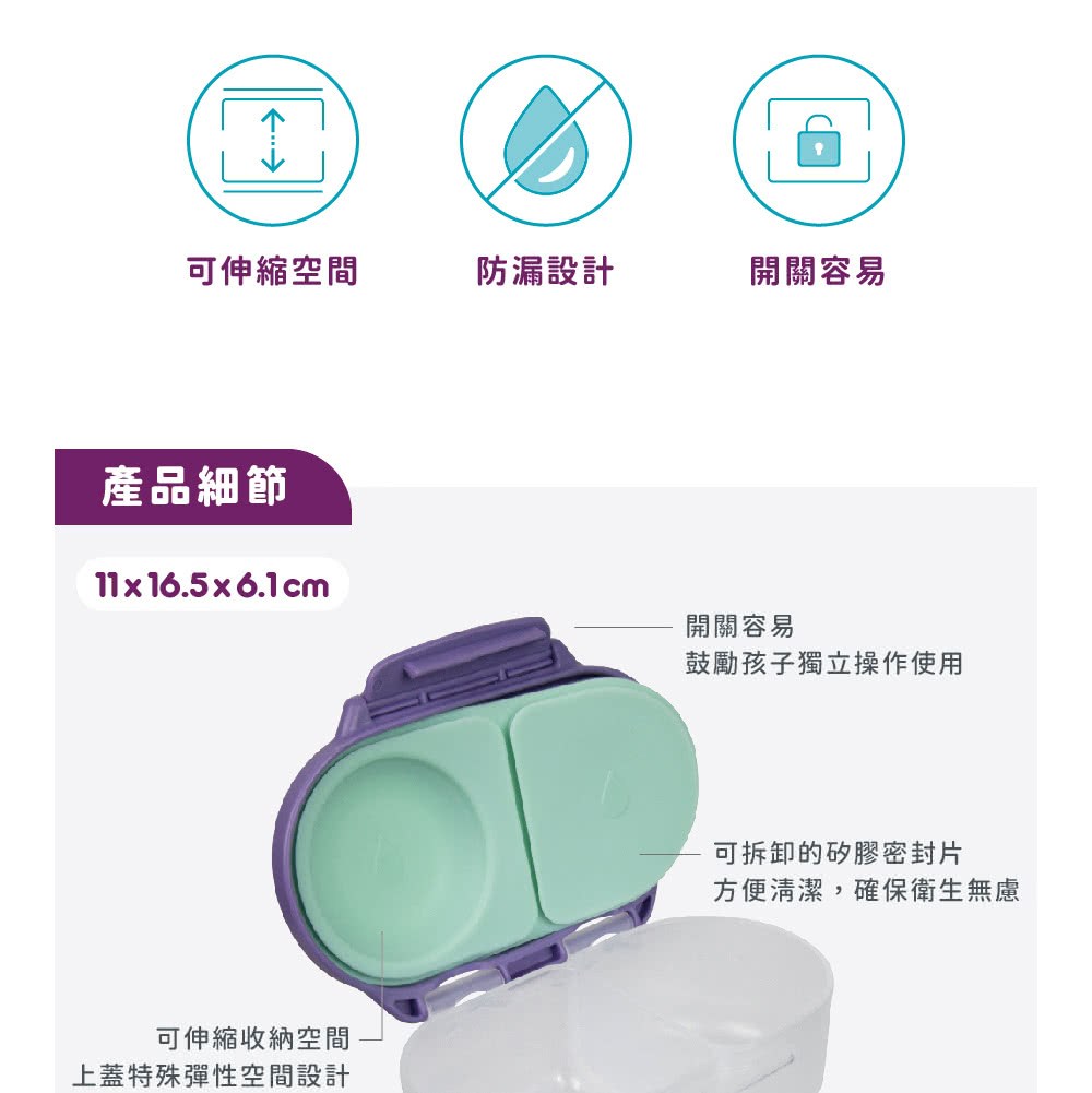 - 分隔設計,輕鬆分類不同點心,保持食物原味,避免味道混雜,讓孩子享受更豐富的味覺體驗。