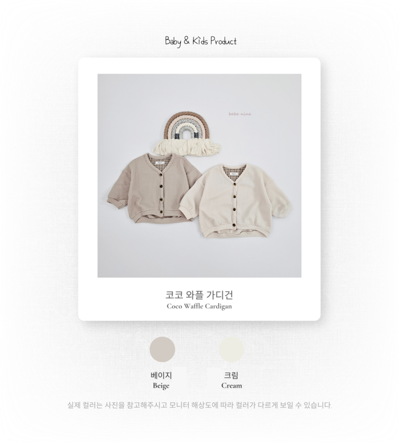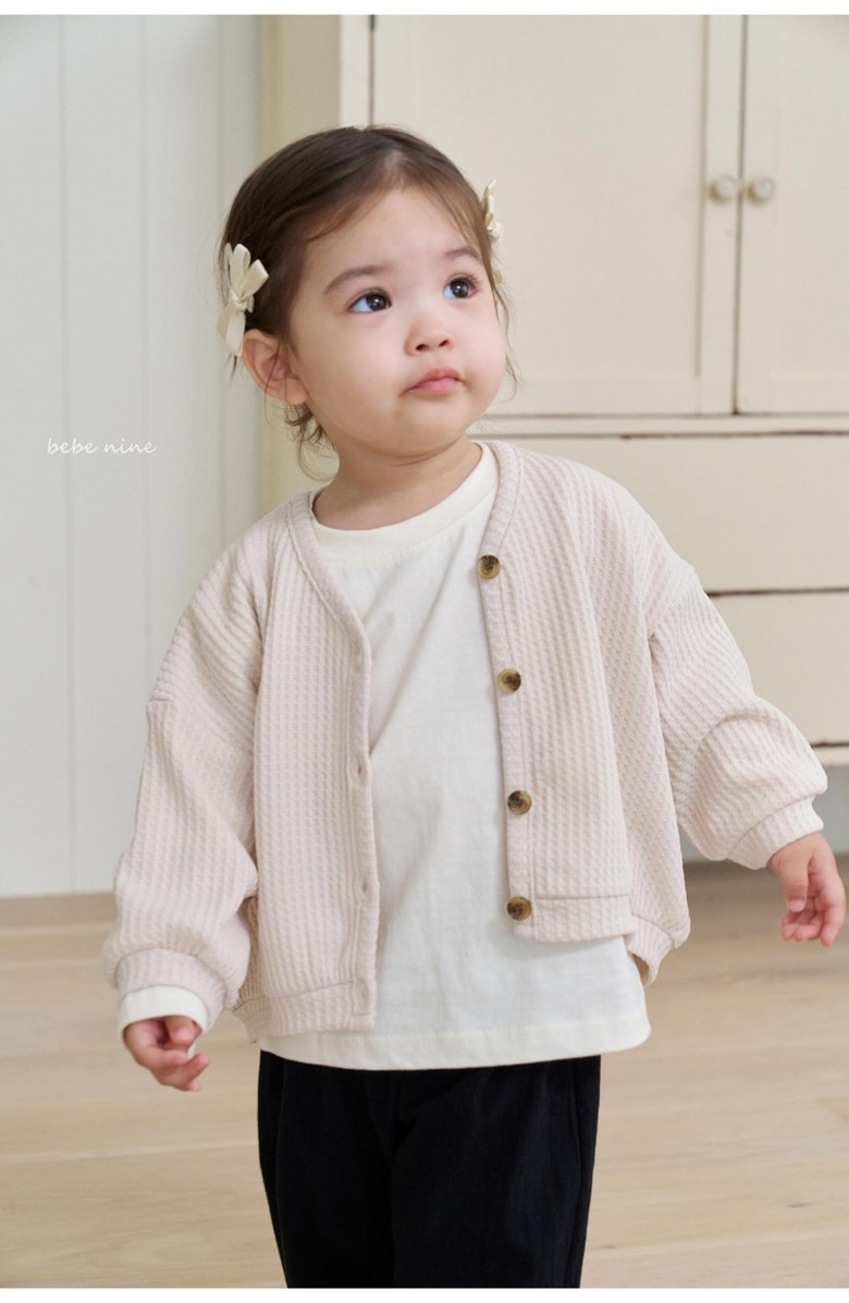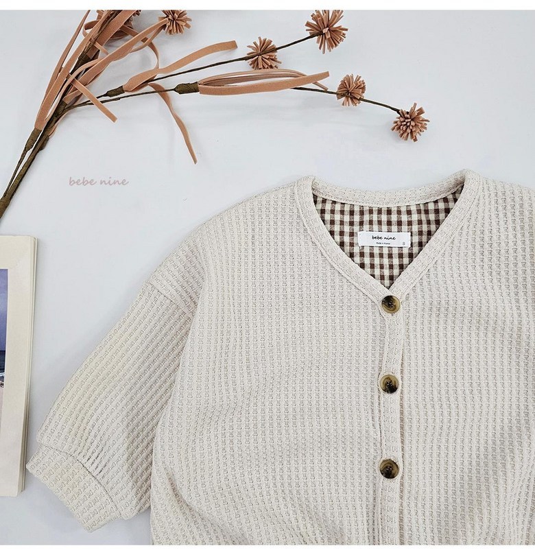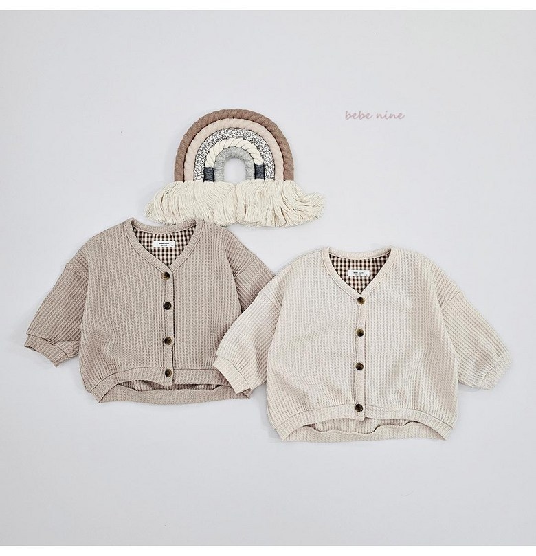 BEBENINE兒童Coco華夫格開襟衫,採用柔軟透氣的華夫格布料製成,給寶寶帶來舒適的穿著體驗。簡約的開襟衫設計,方便媽媽們為寶寶穿脫,無論是居家休閒還是外出遊玩,都能輕鬆應對。多種柔和色系可供選擇,輕鬆搭配各種造型,讓寶寶隨時展現時尚風格。韓國製造,品質保證,讓您安心為寶貝選擇。