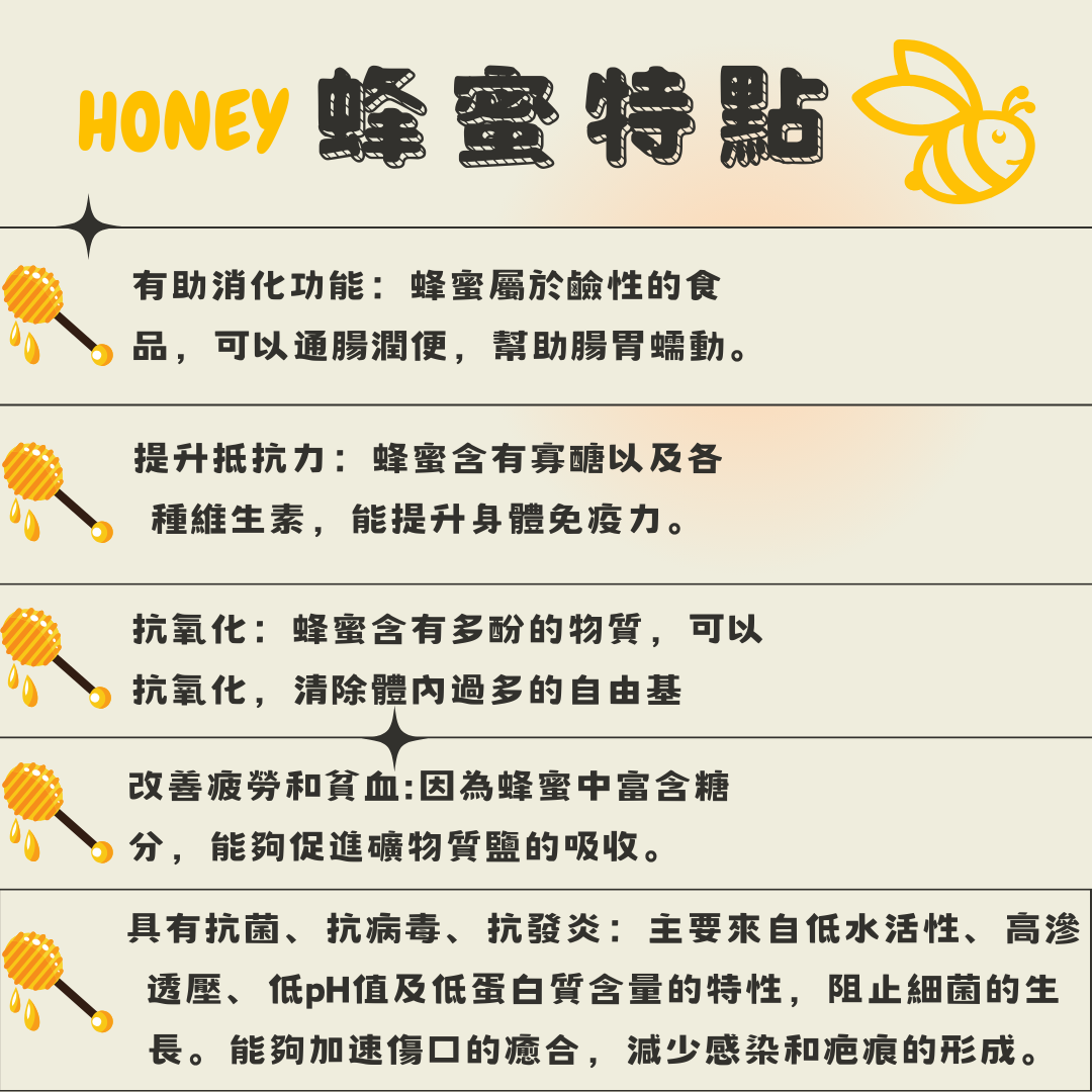 - 嚴選多種花蜜調和,風味獨特,每一口都充滿大自然芬芳,給您帶來愉悅的味蕾體驗。