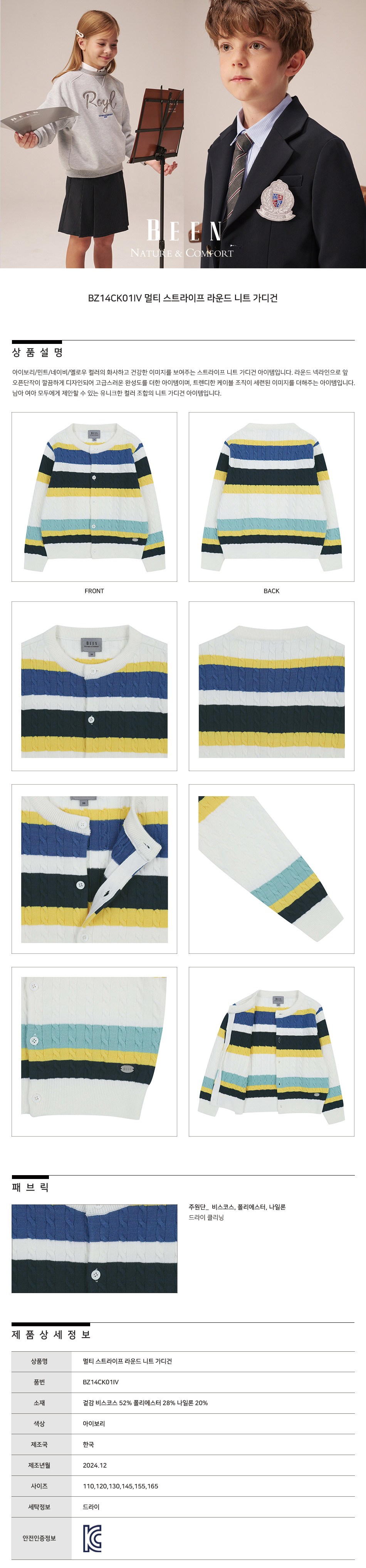 BEEN 兒童多色條紋圓領針織開襟衫 BZ14CK01IV