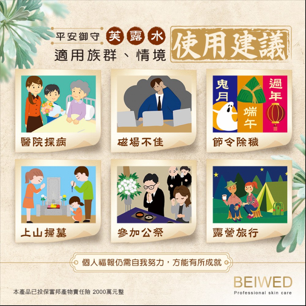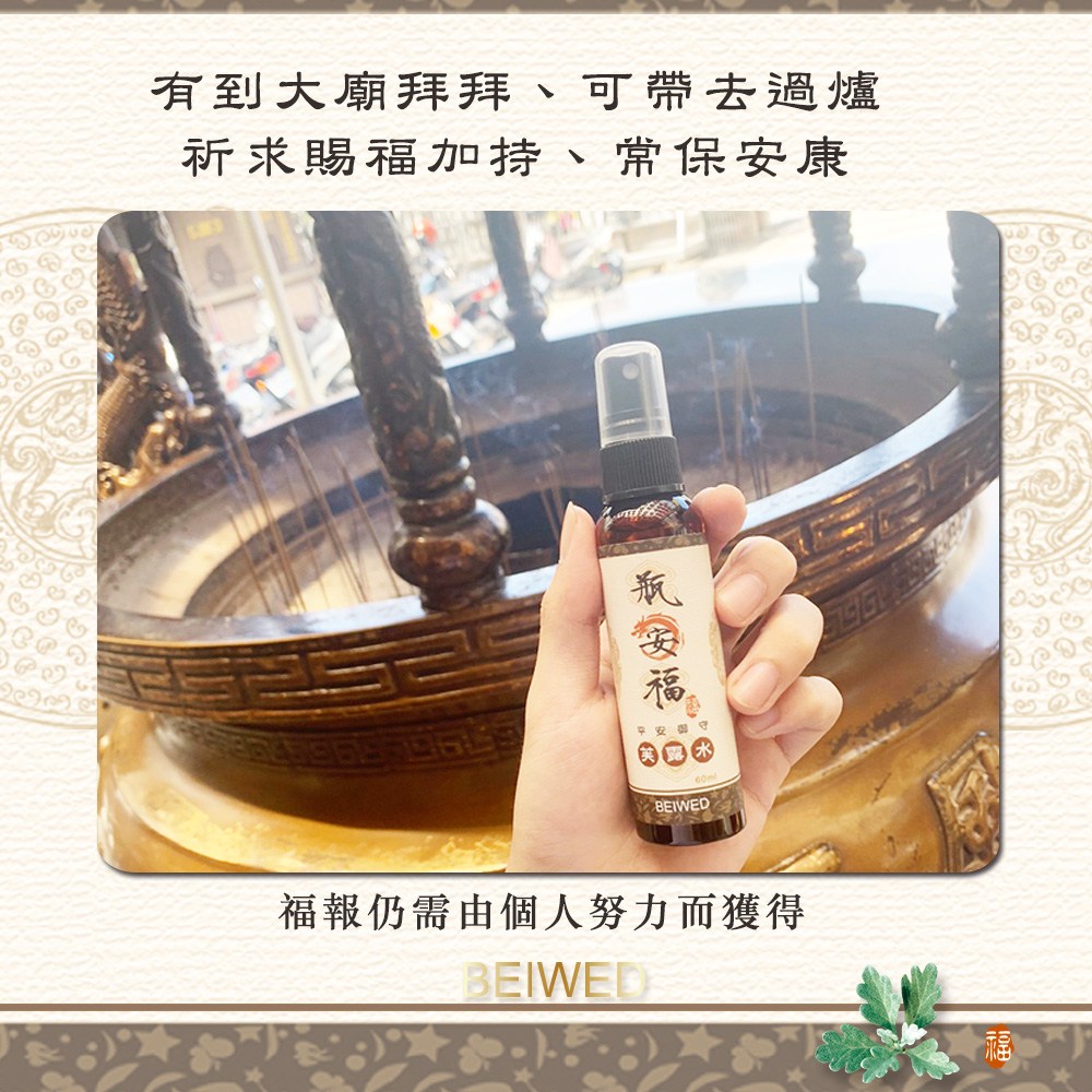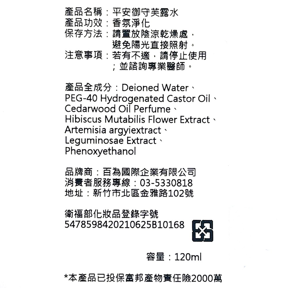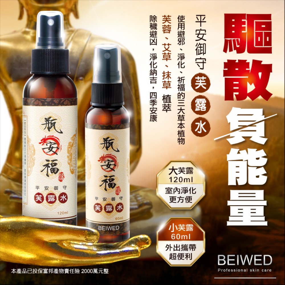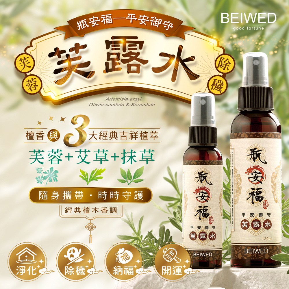 BEIWED 瓶安福 平安御守芙露水,一款蘊含檀香精華的淨化噴霧,適用於所有膚質。這款120ml的噴霧不僅能淨化空氣,還能為您帶來平安與祝福,散發出清新淡雅的香氣,讓您在繁忙的生活中也能感受到寧靜與祥和。隨身攜帶,隨時隨地淨化身心靈,營造舒適愉悅的氛圍。無論是居家、辦公室或旅行,BEIWED 瓶安福 平安御守芙露水都是您不可或缺的守護。