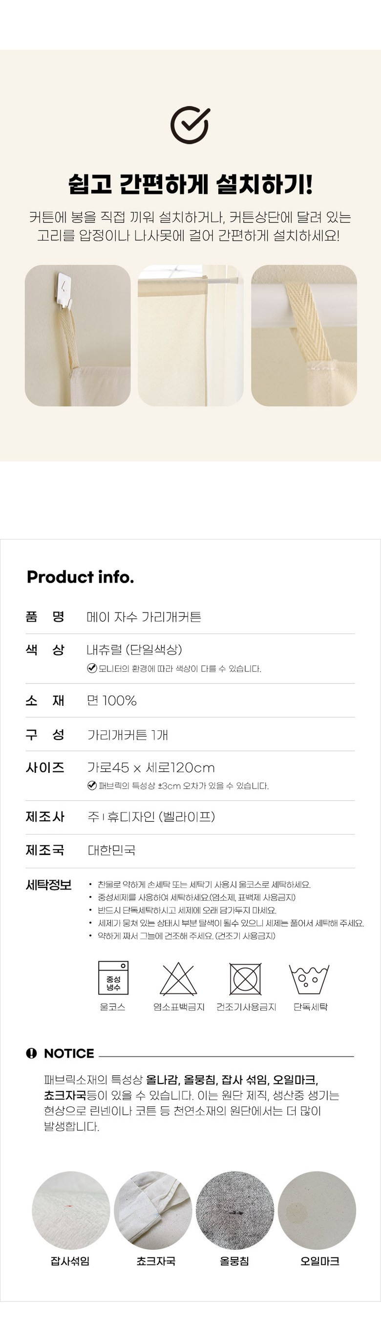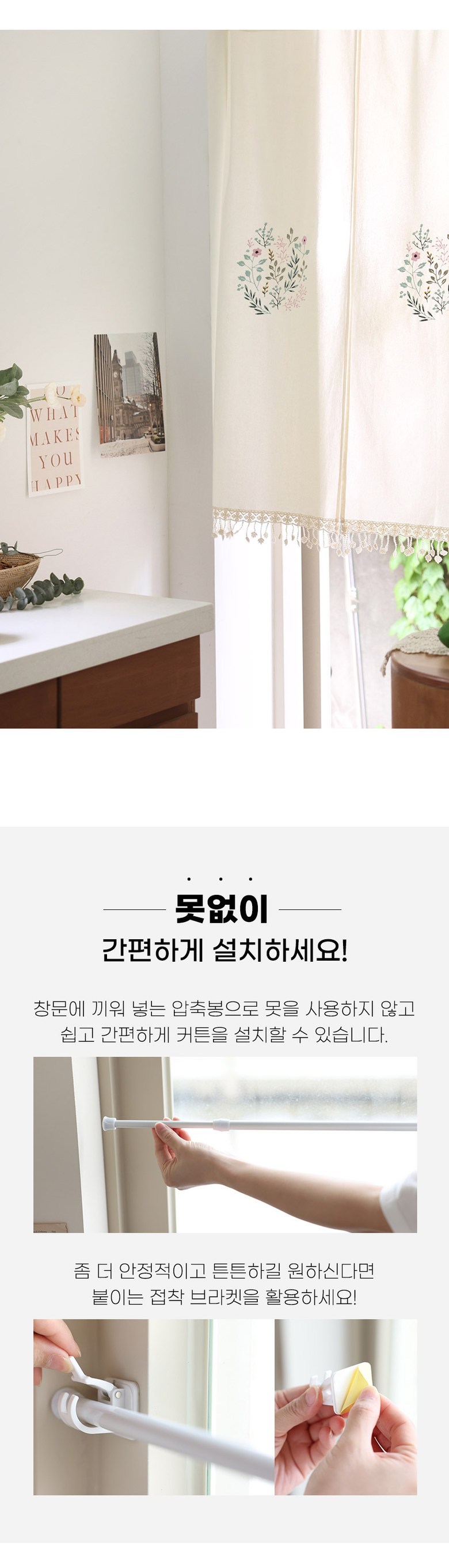 為您的家帶來一絲清新田園風,這款Mae刺繡掛簾以其溫柔的設計脫穎而出。選用高品質的純棉布料,觸感自然舒適,搭配精緻的野花刺繡與典雅的下擺流蘇,細節處盡顯不凡質感。它能適度遮擋並柔化刺眼陽光,保護隱私的同時,也為室內營造出明亮又溫馨的光影效果。45x120cm的尺寸非常適合用於門簾、櫥櫃遮擋簾或作為空間隔斷,輕鬆美化家中任何角落。最重要的是,其免鑽孔打釘的設計,只需搭配伸縮桿即可快速安裝,是租屋族或想隨時變換居家佈置的理想選擇。