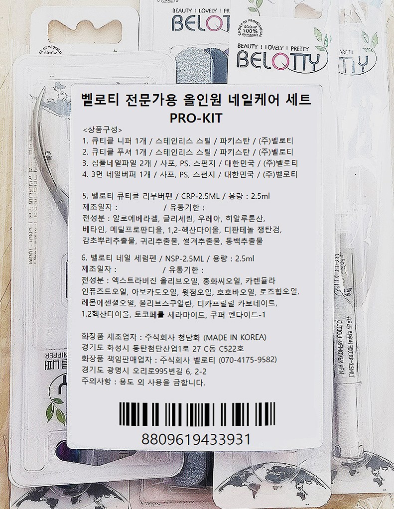 BELOTTY 專業用多合一指甲護理組 PRO KIT, 指緣剪+雙頭鋼推棒+..., 1組