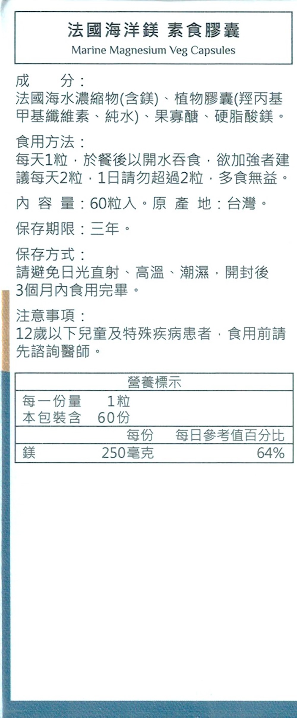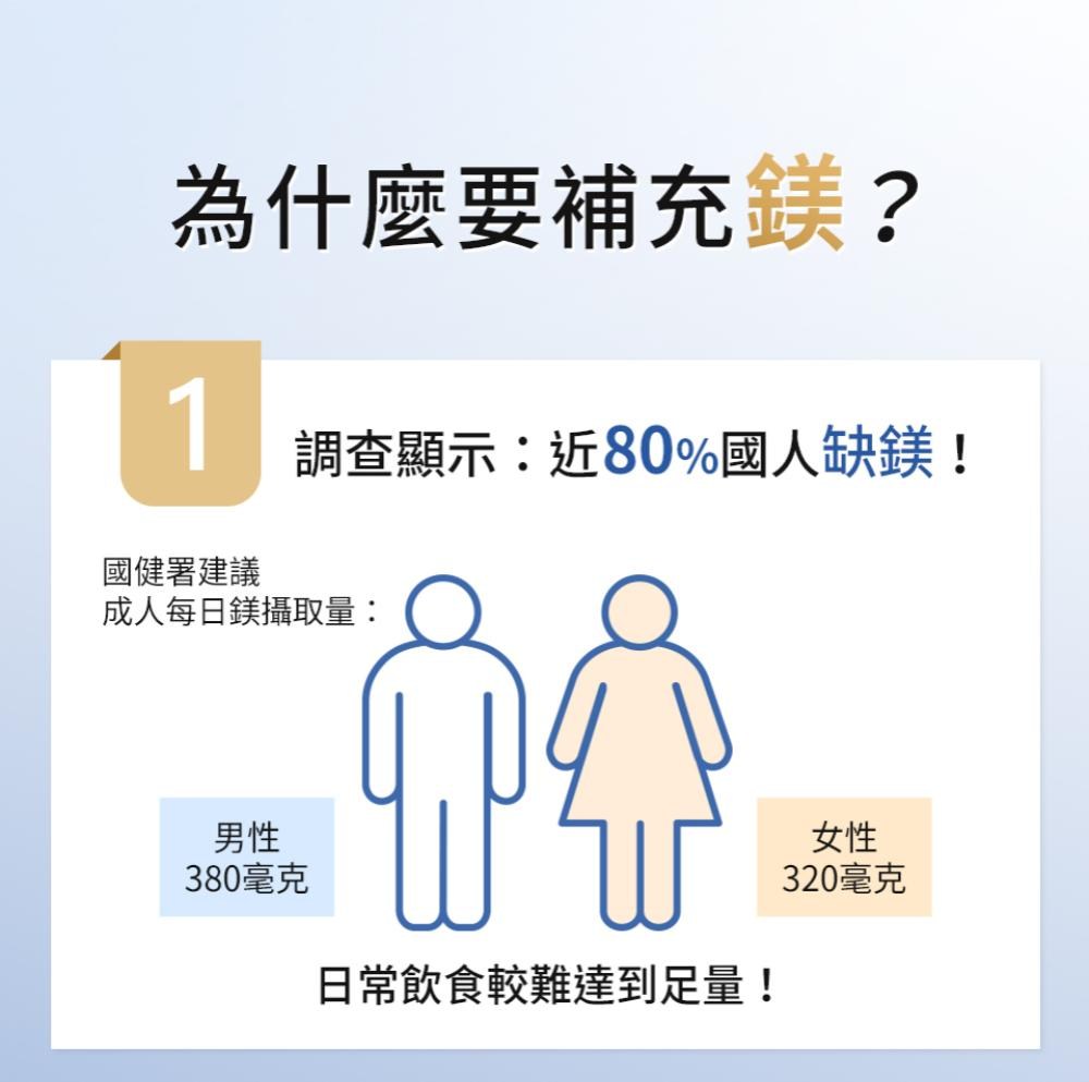 - 每顆膠囊含有300mg鎂,滿足每日所需,維持身體機能正常運作。