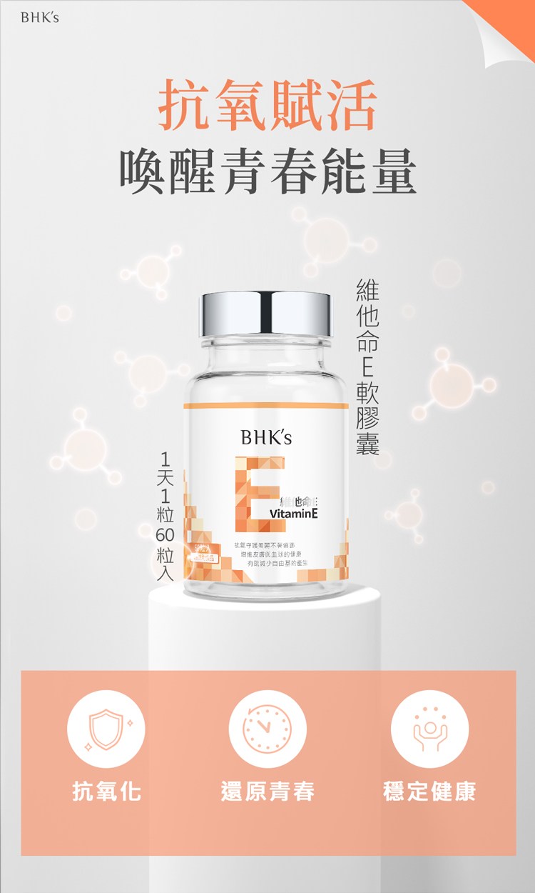 - BHK's維他命E,維持青春美麗,告別歲月痕跡,展現自信光采。