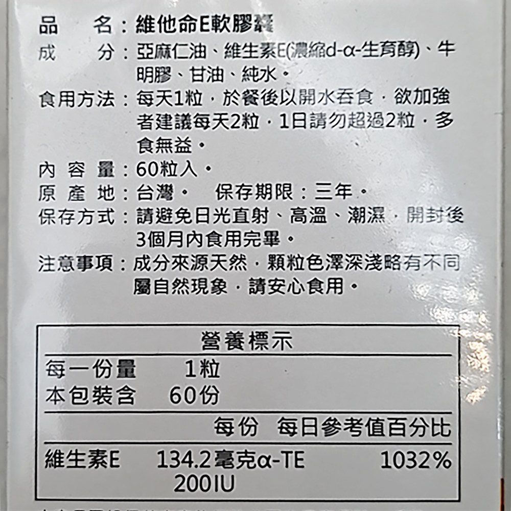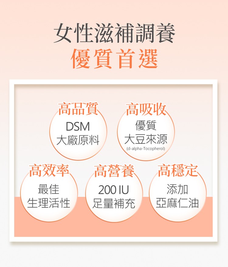 - 告別疲勞無力,維生素E增強體力,精神旺盛,享受充沛能量每一天。