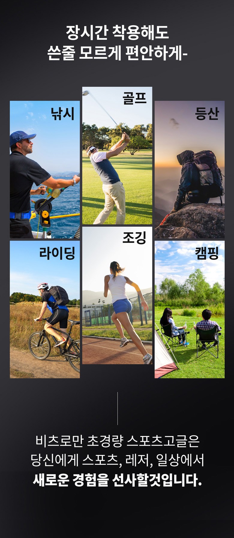 BITROMAN超輕量運動護目鏡,韓國製造,僅重12g,採用TR90熱可塑性樹脂鏡框,兼具彈性與耐用性。多種鏡片選擇,包括偏光、變色等,滿足不同運動和休閒需求。人體工學設計,配戴舒適,適合長時間使用。無論是高爾夫、釣魚、登山或騎行,都能為您帶來全新體驗。清晰視野,舒適配戴,盡在BITROMAN。