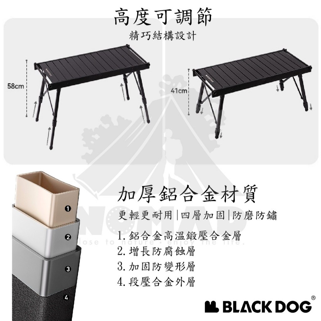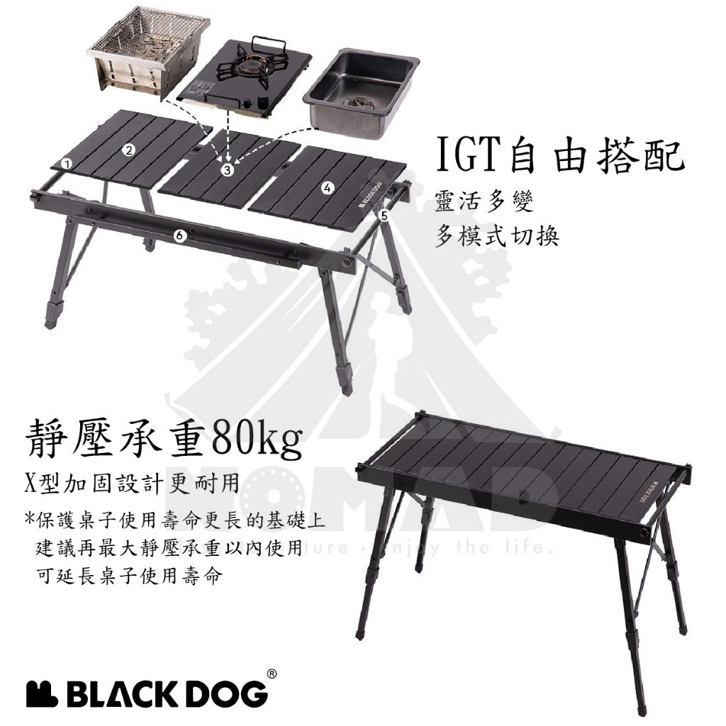 BLACKDOG 可升降IGT組合桌,為您的露營體驗帶來極致的便利與舒適。這款夜幕黑色的IGT組合桌,採用輕巧耐用的鋁合金框架,不僅堅固可靠,更方便攜帶,重量僅4公斤。桌面尺寸為95 x 38公分,提供充足的空間,讓您輕鬆擺放餐具、烹飪用具或其他露營用品。其可升降的設計,高度可在41至58公分之間自由調整,無論是坐在椅子上或直接在地面上,都能找到最舒適的高度。無論是家庭露營還是戶外探險,BLACKDOG IGT組合桌都能滿足您的需求,讓您在享受大自然的同時,也能擁有如家一般的便利。