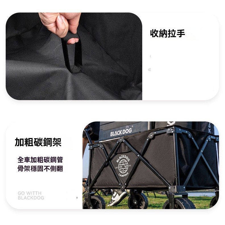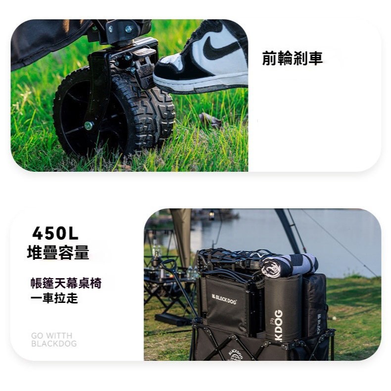 BLACKDOG 露營車手推車 山影Pro 450L,是您戶外露營的完美收納幫手。這款手推車採用堅固的牛津布、鋁合金和塑膠材質,確保耐用性和可靠性。450L的大容量讓您輕鬆攜帶所有露營裝備,而12kg的重量則保證了便攜性。無論是搬運帳篷、睡袋還是炊具,山影Pro都能輕鬆應對,讓您的露營體驗更加輕鬆愉快。此外,其可折疊設計方便收納,不佔用額外空間,是露營愛好者的理想選擇。