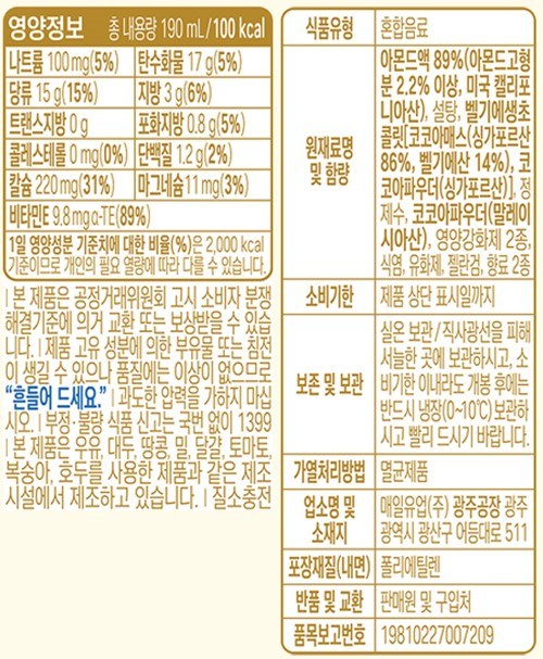 ※리뉴얼 진행 중인 상품으로 패키지 디자인, 원재료 및 함량, 영양정보, 품목보고번호, 업소명 및 소재지가 상이한 동일 제품 수령하실 수 있습니다.