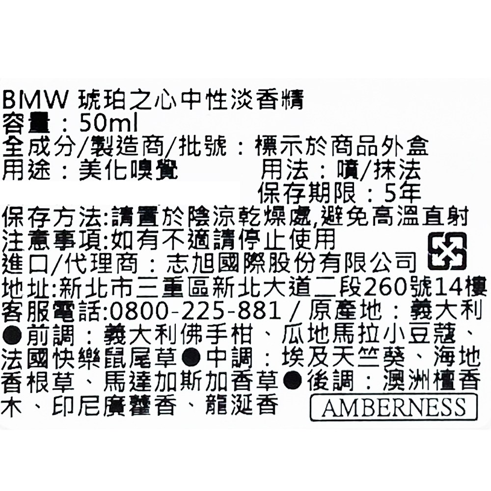 - 感受BMW琥珀之心中性淡香精,喚醒您的自然情感,享受自由且舒適的奢華體驗。